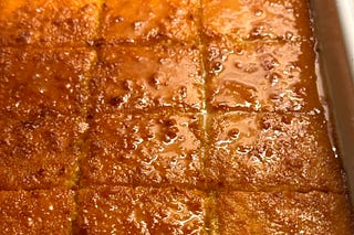 This traditional Arabic semolina cake is baked until golden and drenched in a buttery orange syrup.