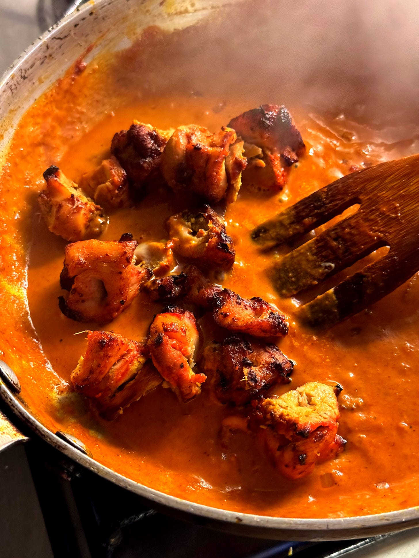 Chicken tikka kebab is a delectable opening to South Asian feast, a lean and flavourful snack and a great base for a chicken tikka masala [GET THE RECIPE]. This style of chicken kebab has its origins as a royal Mughal dish, in which seasoned pieces of chicken were skewered and cooked in a tandoor oven. ‘Tikka’ is different to a ‘tandoori chicken’ which uses bone-in, marinated chicken pieces. ‘Tikka’ itself means ‘pieces’, and is a boneless alternative that’s easy and straightforward to snaffle. This recipe uses a classic meat masala, as well as soured milk. Milk soured with a little lemon juice makes a great meat tenderiser and is far closer to the desi-style ‘dahi’ yoghurt that is used for marinating. Enjoy these kebabs with raita, a salad and some roti or naan for a light, flavourful lunch or dinner. It also makes a gorgeous sandwich filling when chopped and combined with mayonnaise! Let’s go!