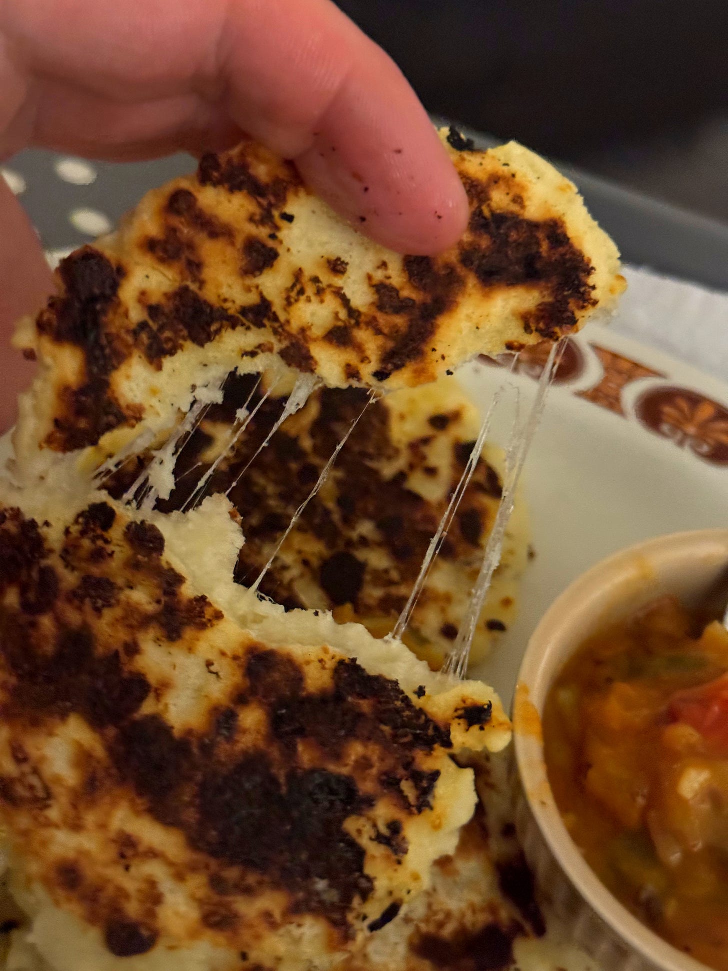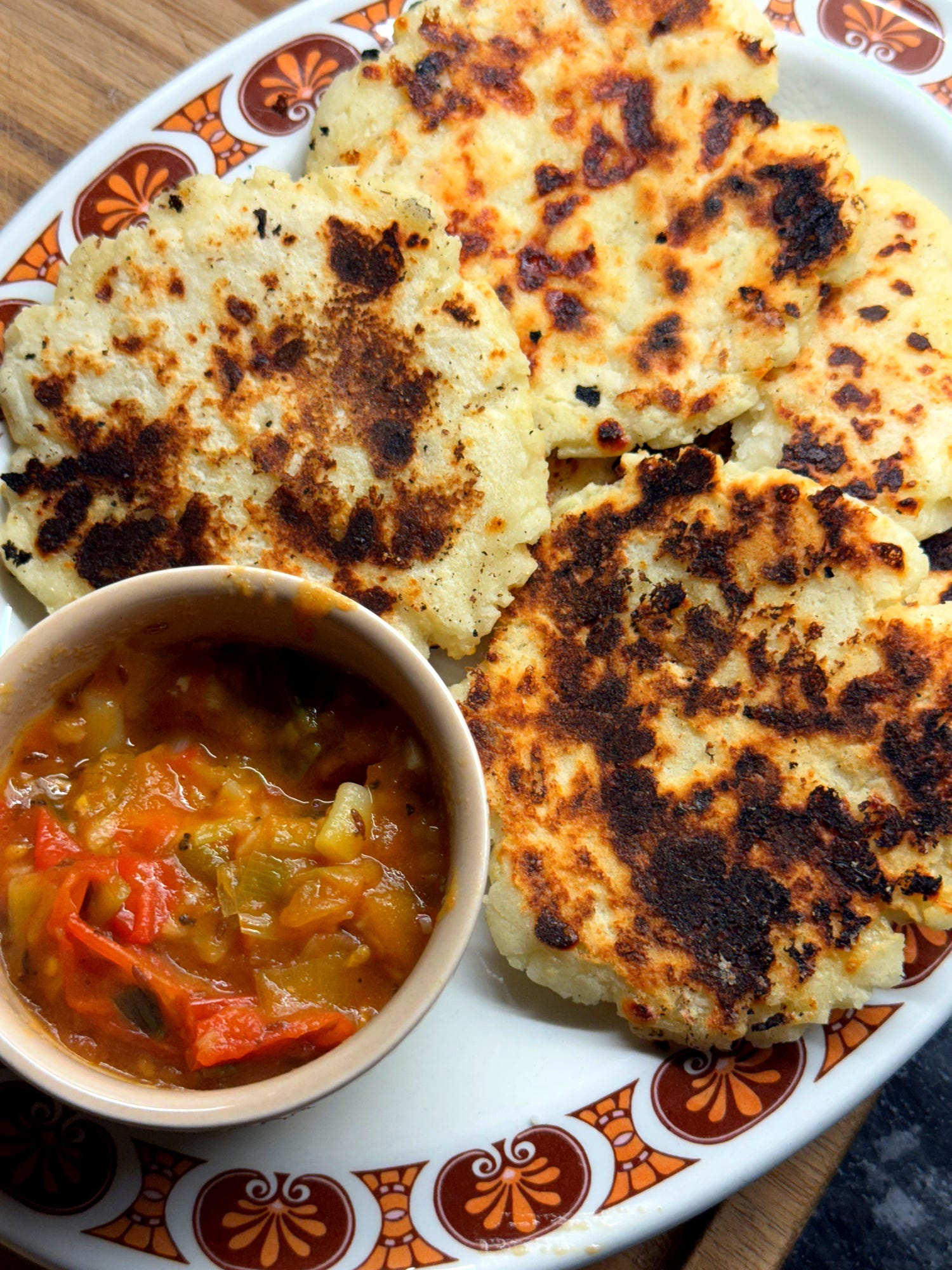 Serve your arepas straight away with a salsa, scrambled eggs or any savoury stew. Some Colombians enjoy cheese arepas with hot chocolate for breakfast too. Either way, enjoy and eat them the same day they are made. Any leftover dough and be covered, chilled and used within 2 days.