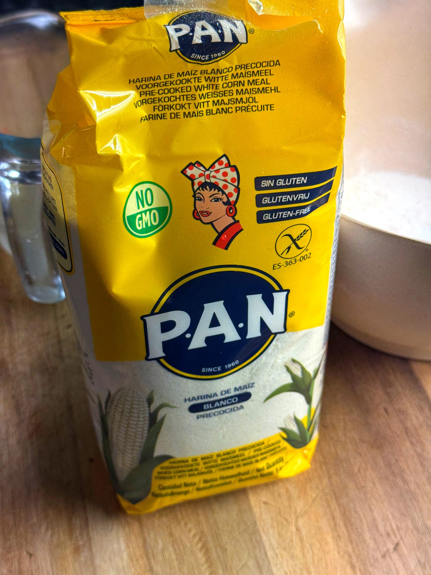 300g of ‘masarepa’ cornmeal (P.A.N. brand is best) [BEST BUY] [can not be replaced with Indian-style cornmeal or grits]