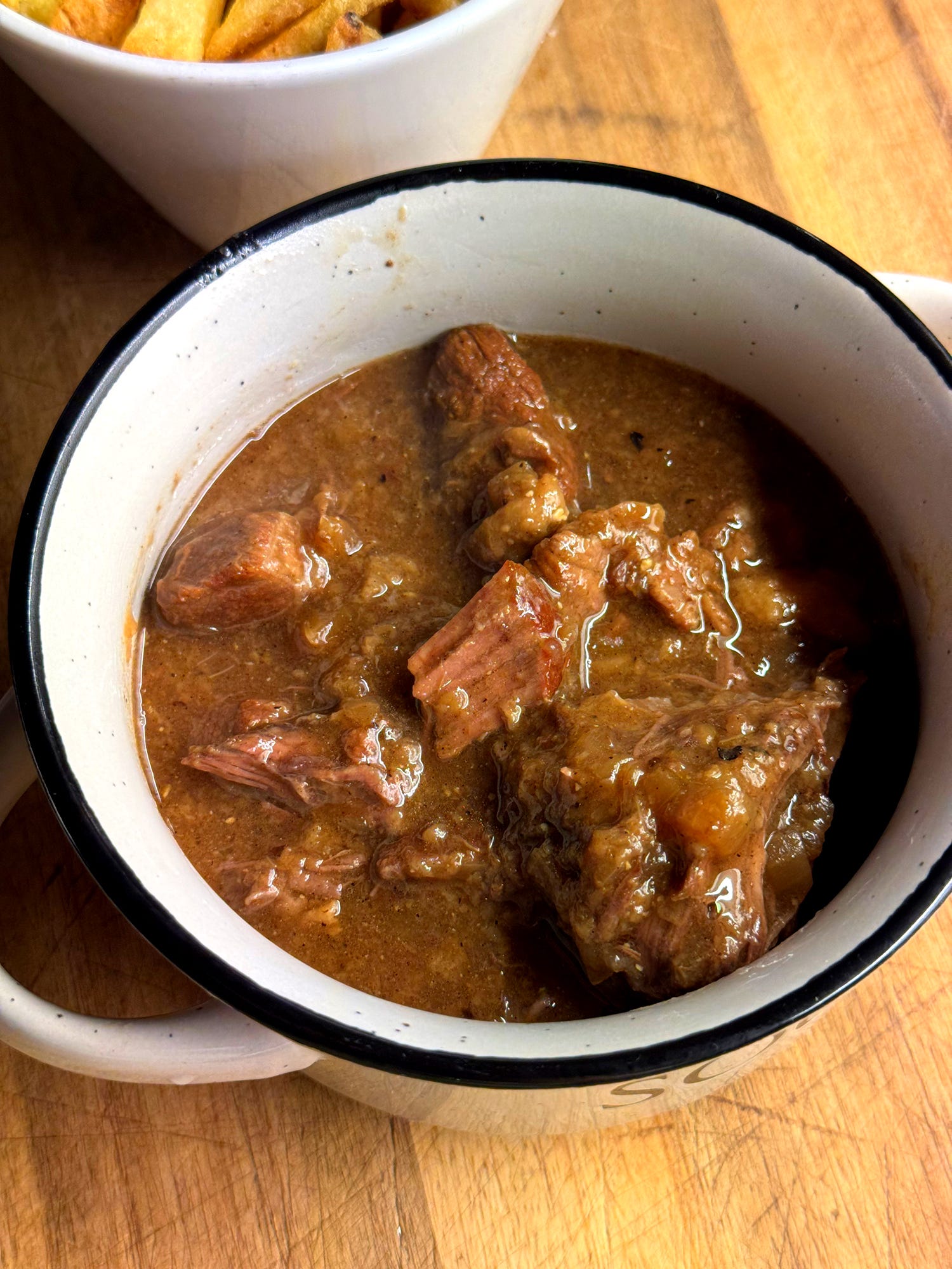 Serve your stoofvlees with fries or mashed potatoes. A proper beef stew! Enjoy!