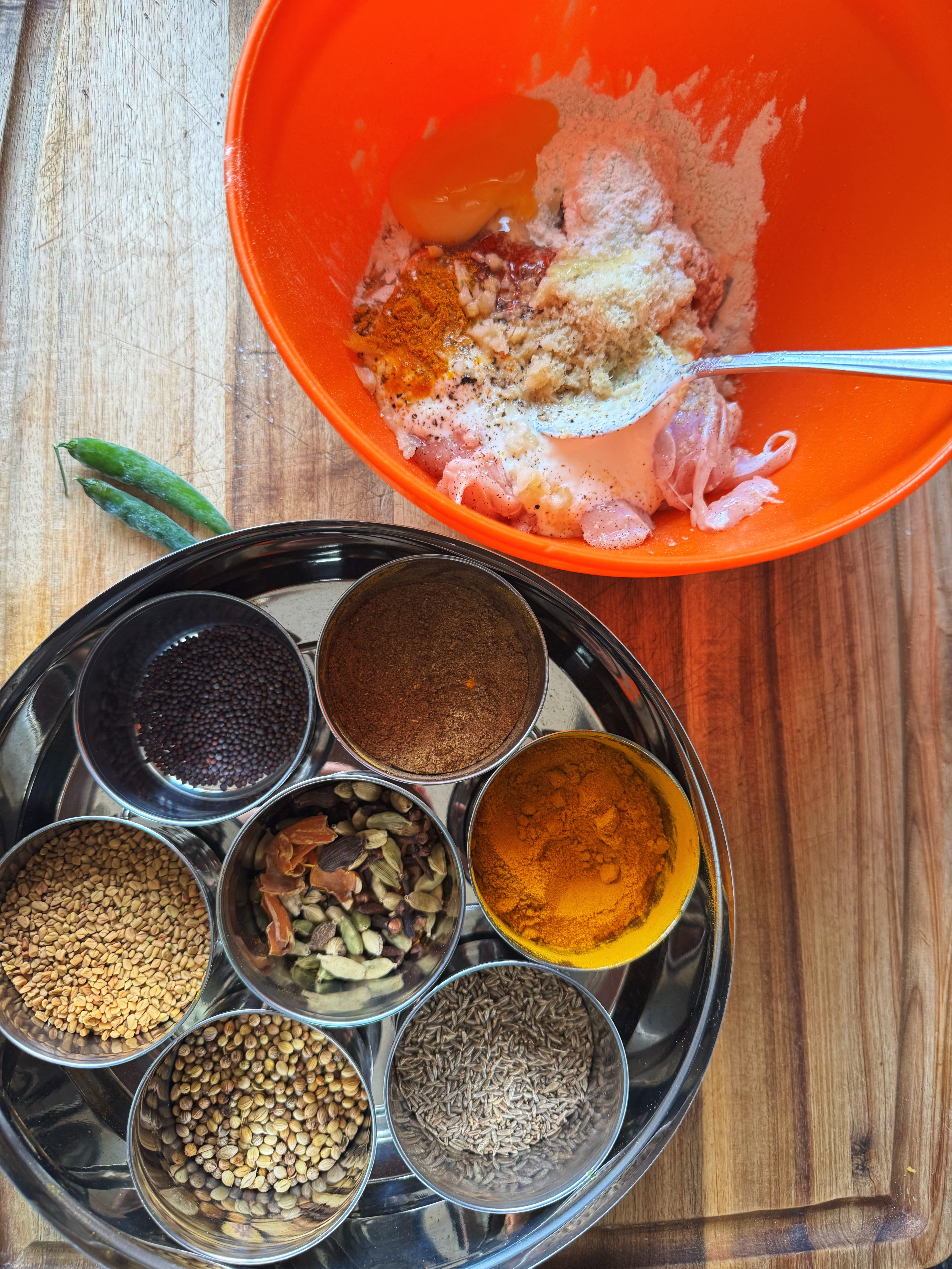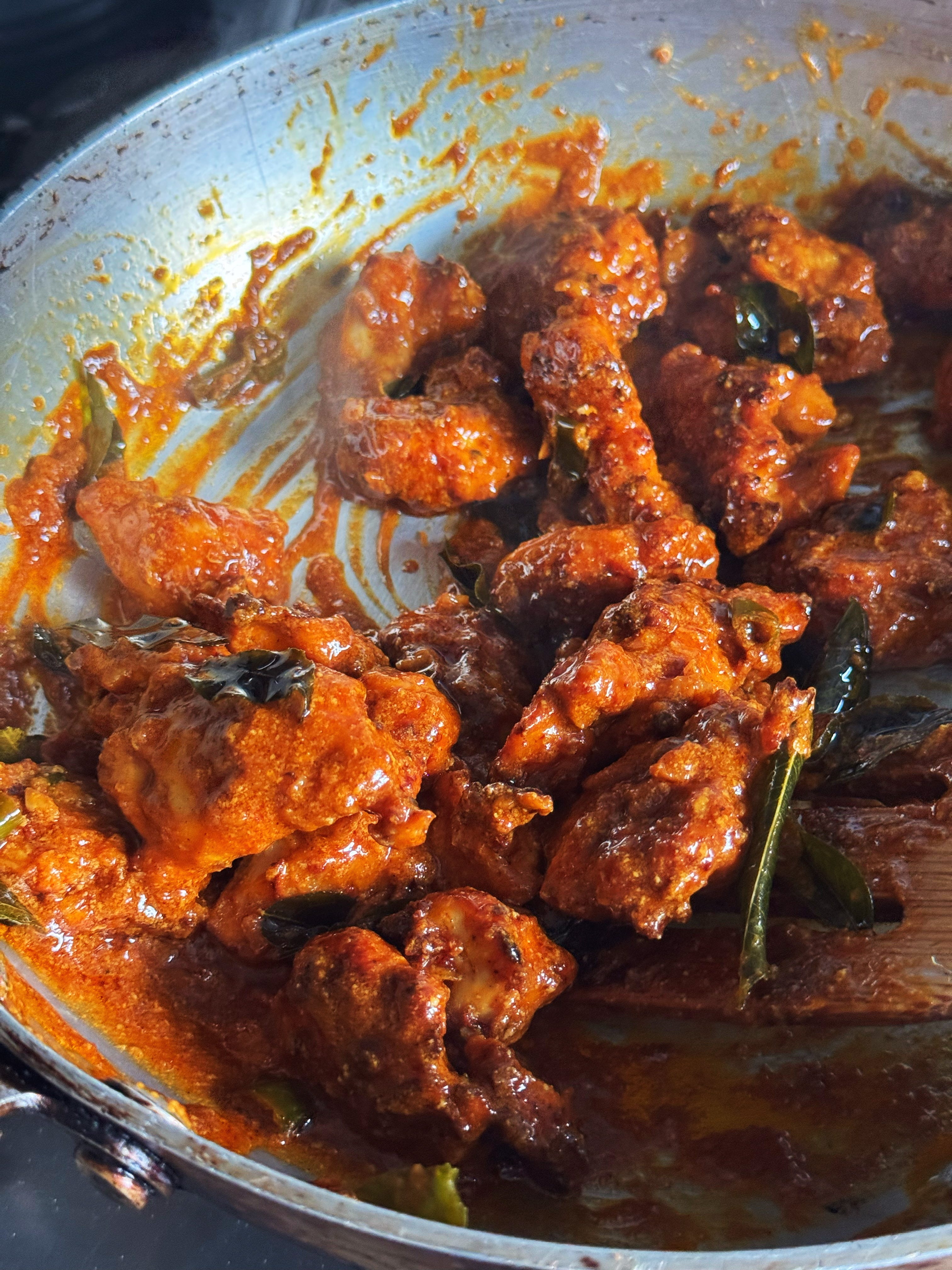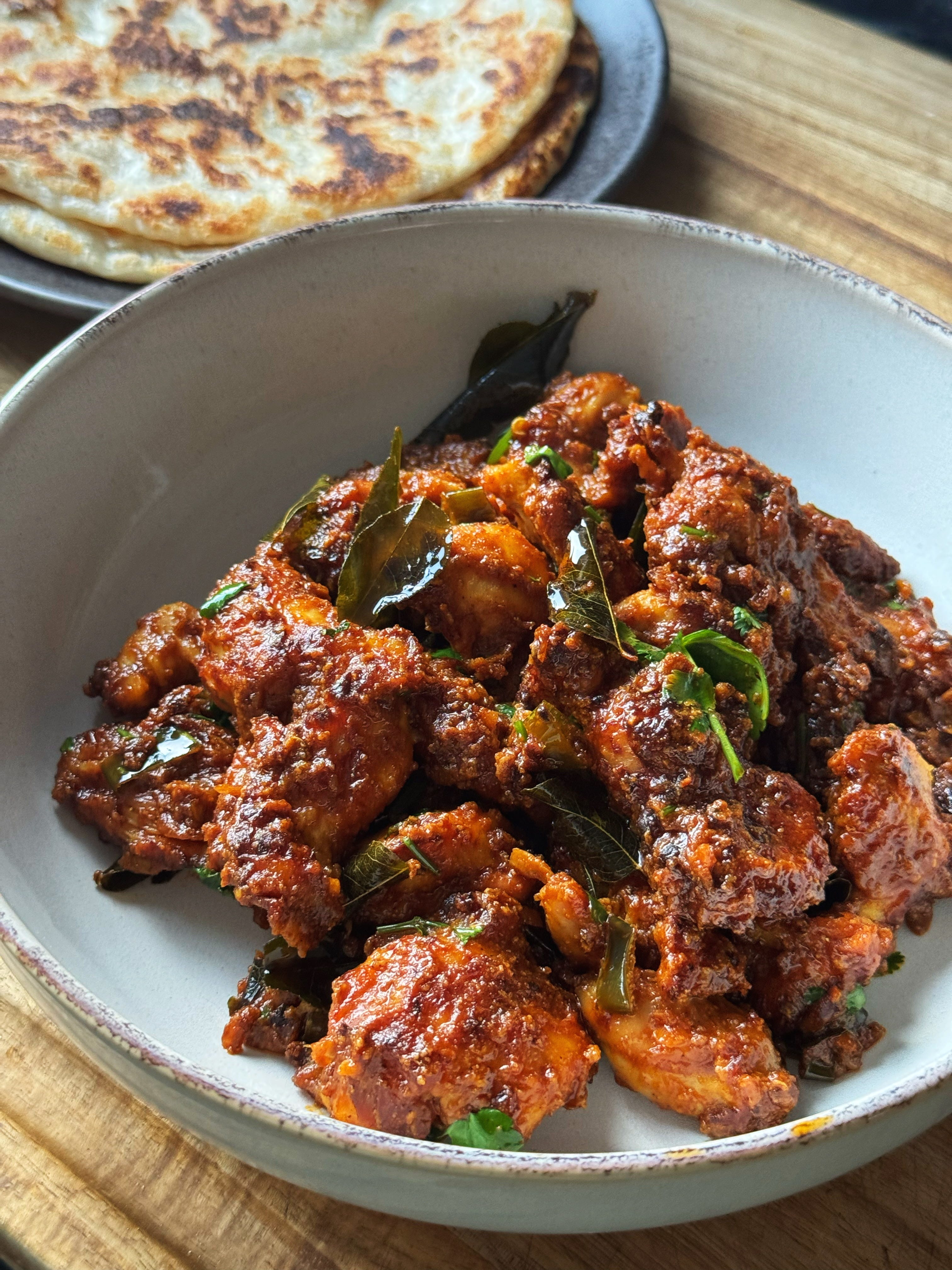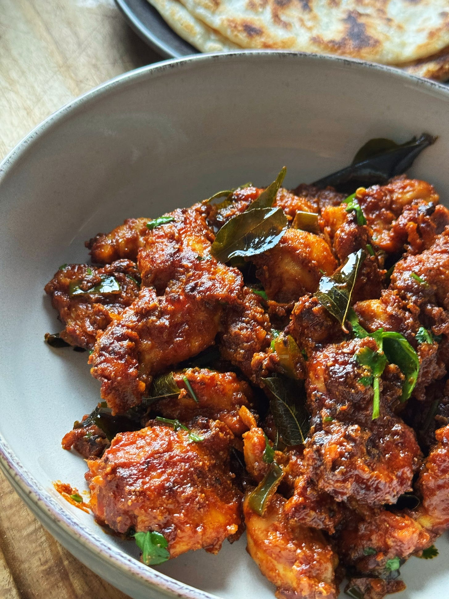 A classic Hyderabadi street food, ‘chicken majestic’ is a tantilising dry chicken curry dish tossed in a tangy yoghurt sauce. It’s not considered a main dish in Hyderabad. Though substantial and packed with flavour, it’s often considered a snack or even a dish for nibbling. It’s great enjoyed cold too. Due to its location in Central India, there are small dashes of Chinese influence in this dish through historic trade with the East, so you can expect to find a nip of soy sauce in here too for extra savoury punch, or even Sichuan pepper. Feel free to deep-fry the battered chicken if preferred, however I find baking or air-frying gives comparable results as the chicken is soothed by a rich yoghurt sauce one way or another. Please eat it with your hands, or use a paratha or roti if you’re precious about it. Let’s go!