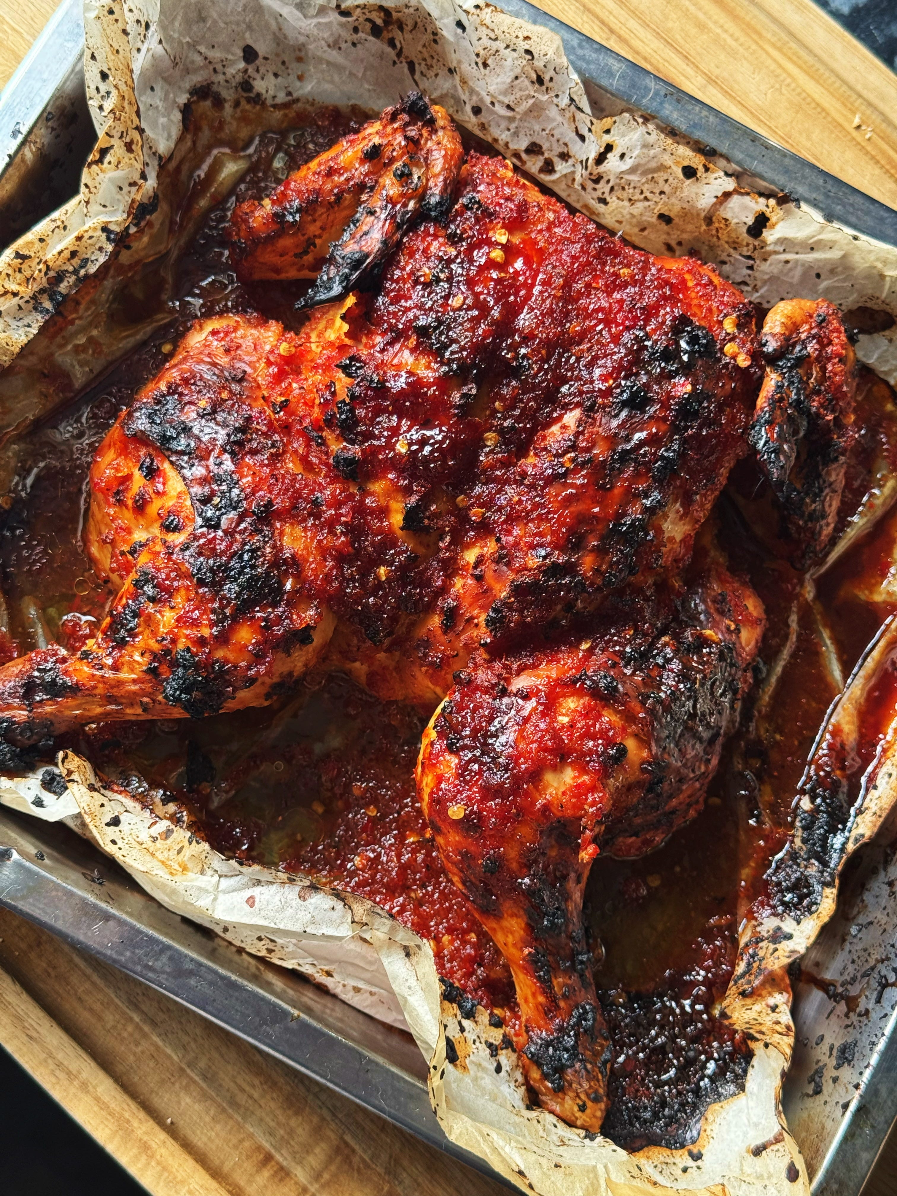 Indonesia offers one of Asia’s richest and most fascinating cuisines. Spread across multiple islands, Indonesian food is actually claimed by various tribes and ethnic groups who have honed and imparted a signature style on their own produce. This particular barbecue chicken style comes from the Indonesian island of Lombok, famous for a spicy barbecue style with lots of red chillies. It’s often made with a particular variety of small chicken on the island. ‘Ayam Taliwang’, named after its home village Karang Taliwang, is now famous through Indonesia and is a must-try for anybody visiting the scenic island of Lombok. Until then, you can actually enjoy it at home. You can cook this chicken on a barbecue or in the oven - I’ve included instructions for both - and, true to the original, the Taliwang marinade is surprisingly straight-forward and light on ingredients. Don’t hold back on the chillies now - use as many as you dare. This is a barbecue chicken that demands fire, no ifs or buts! Let’s go!