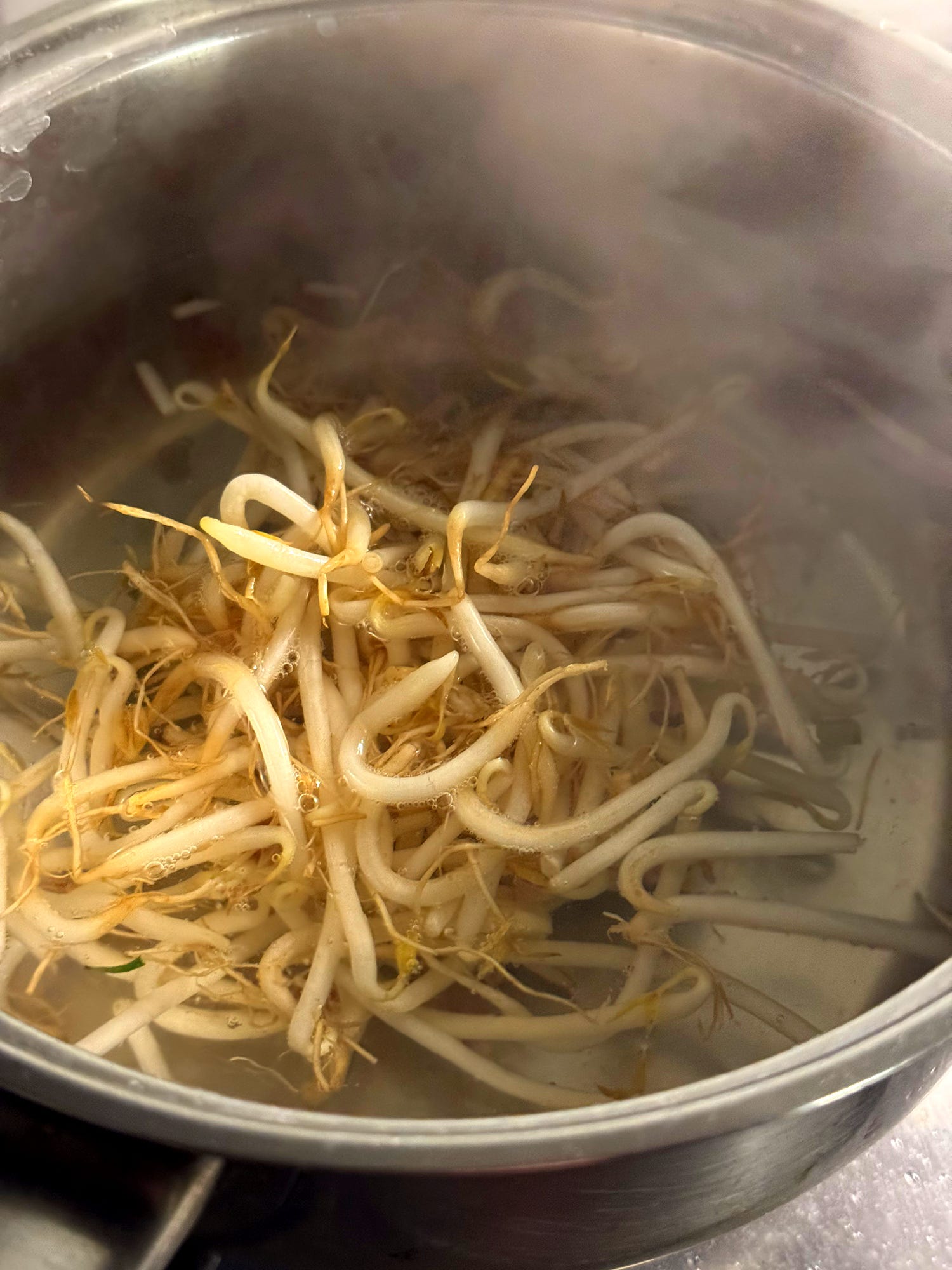Before serving, prepare the gado gado components. Bring a pan of salted water to the boil. You can use this to boil any additions (potatoes, hardboiled eggs) or blanch your vegetables (beansprouts, green beans). You can slice any fresh ingredients to add to the platter (tomatoes, cooked potato, grated carrot, coriander) and fry any protein until crisp (chicken, tofu, tempeh). Once prepared, the vegetables and protein can be arranged around the plate and kept at room temperature until serving.