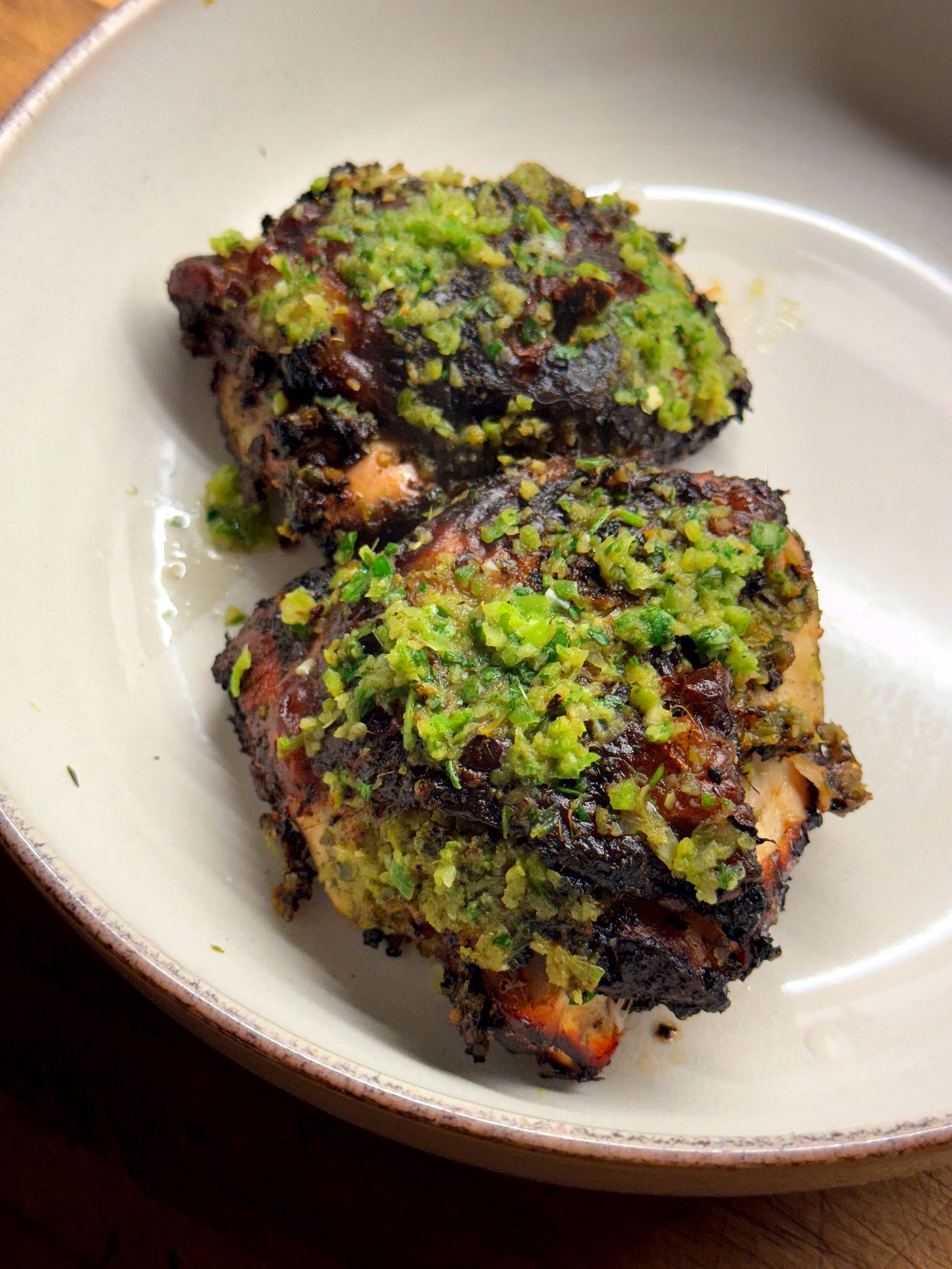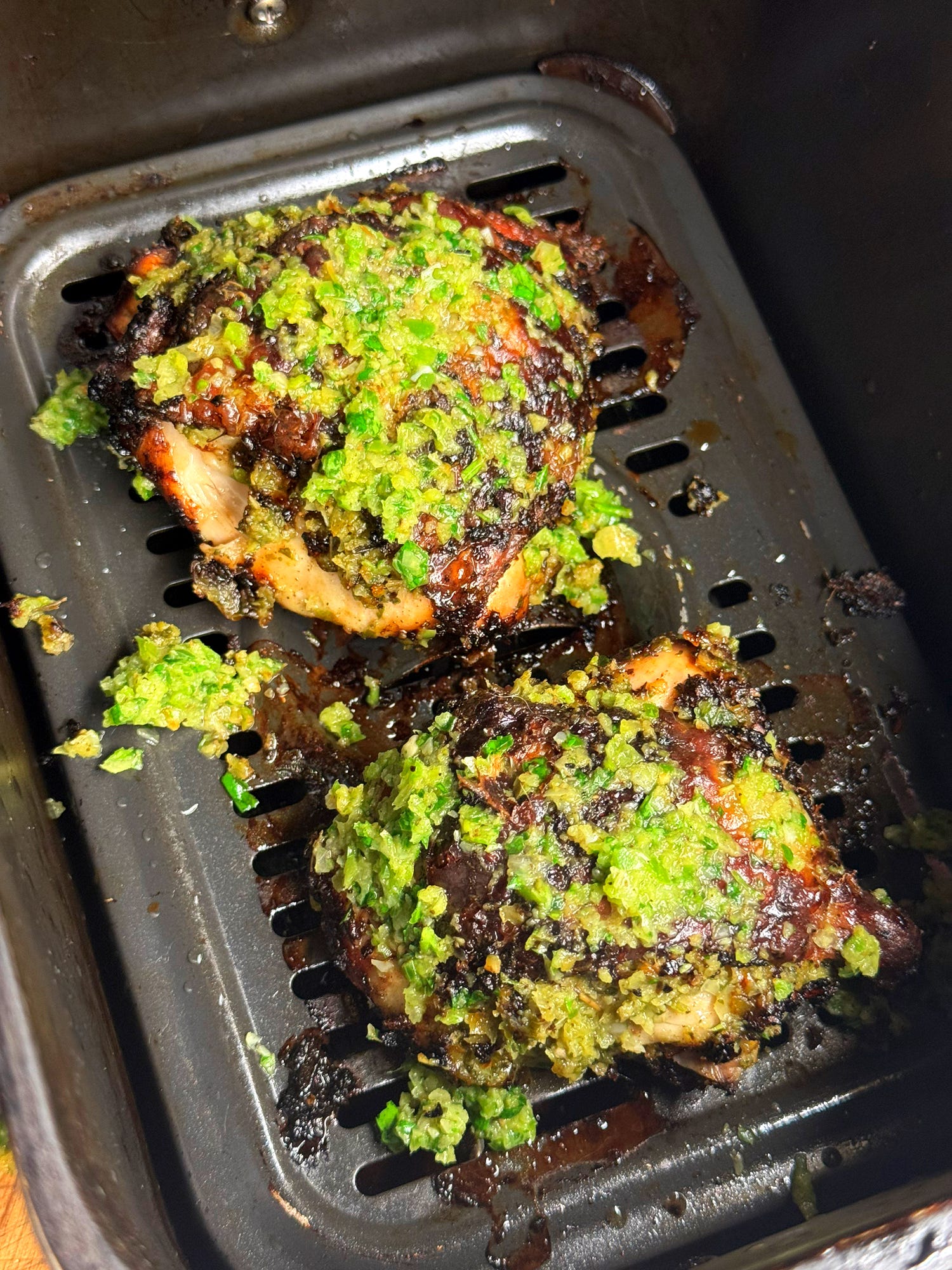 Brush over some of the reserved green seasoning from earlier for a fresh, green kick. Allow it to rest for 5 minutes before serving.