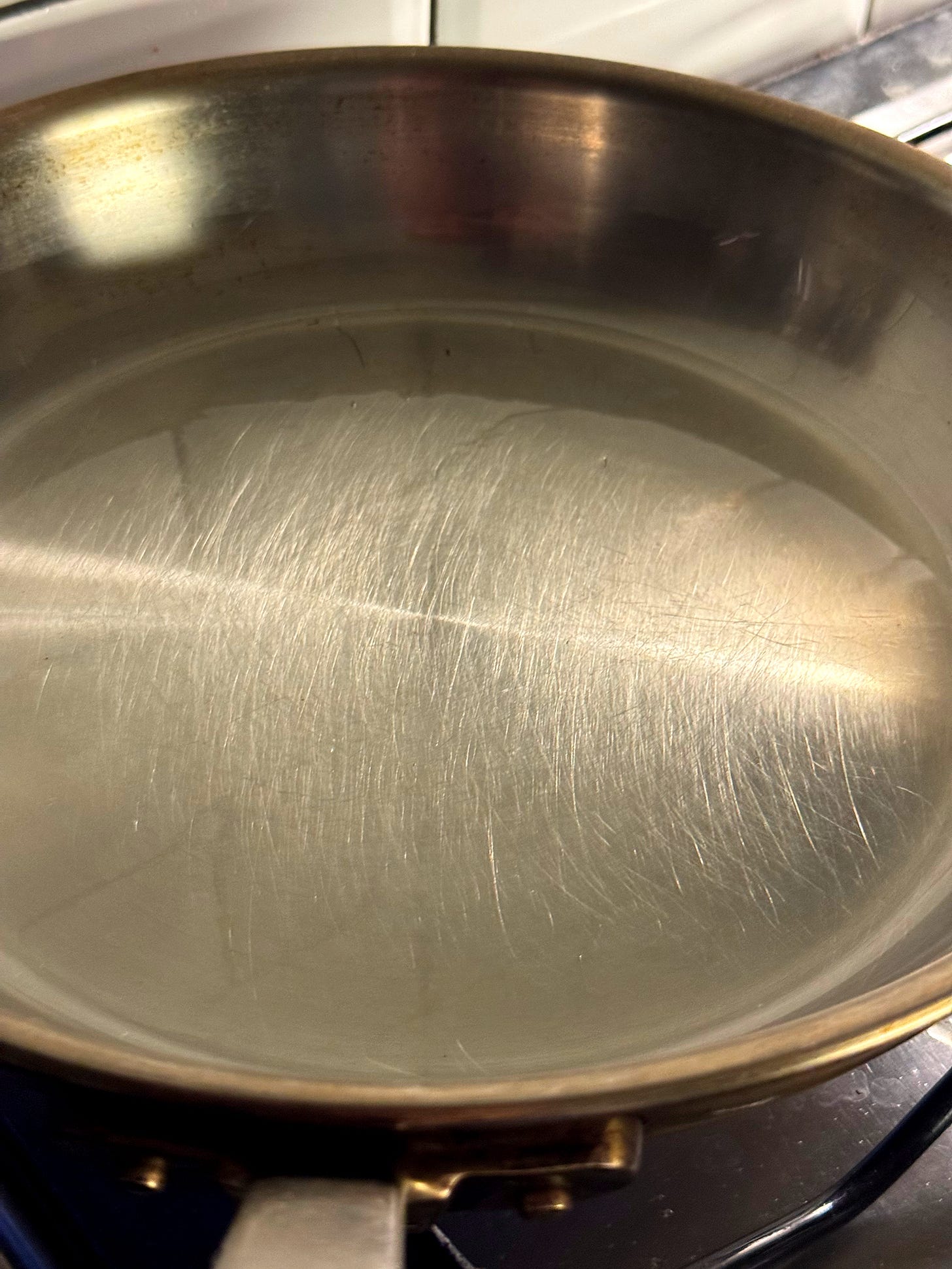 Now let’s cook the pork fritter. Place a saucepan onto medium heat and allow it to heat for 2-3 minutes. Add the 2 tablespoons of cooking oil and allow it to coat the pan.