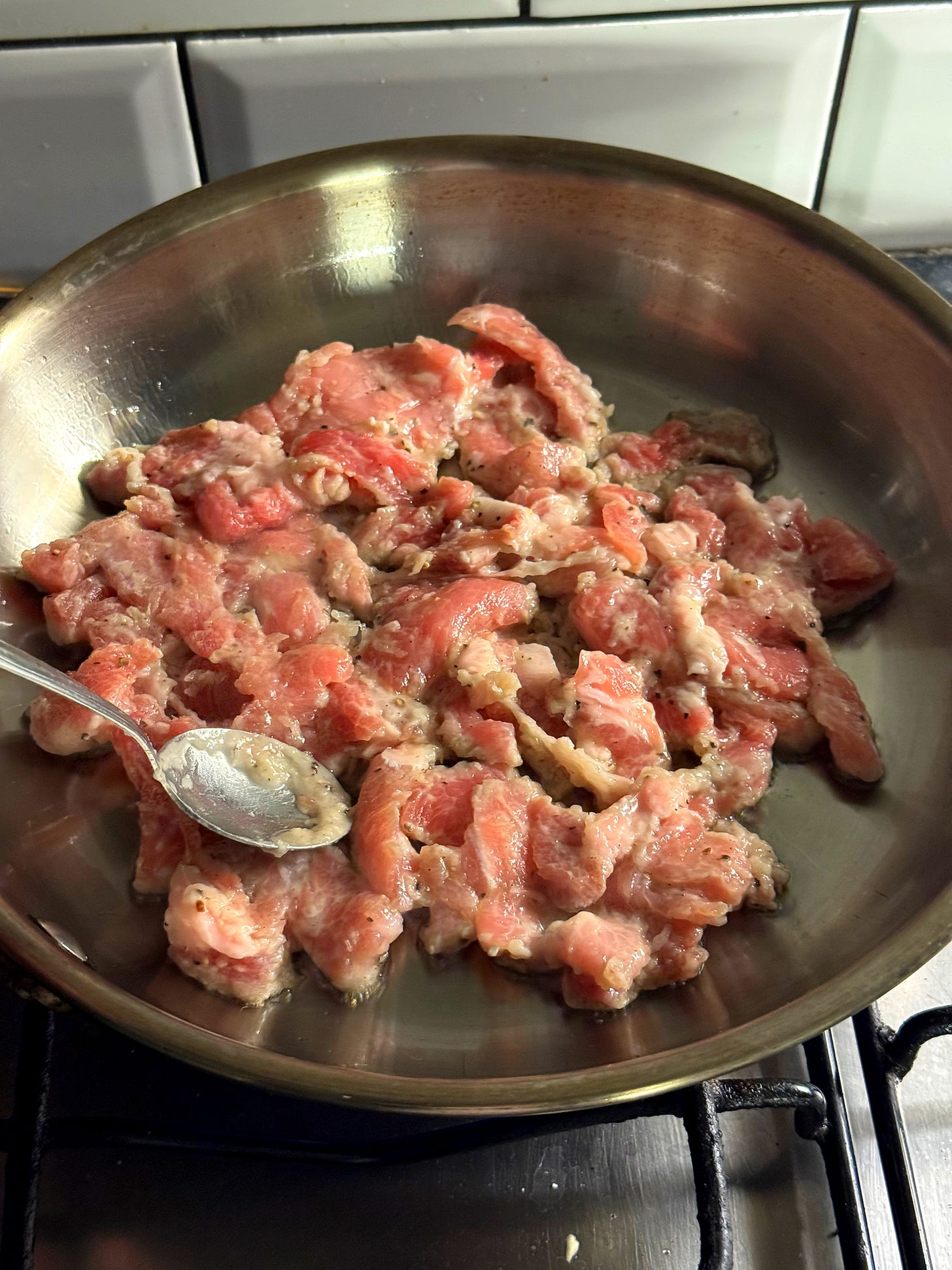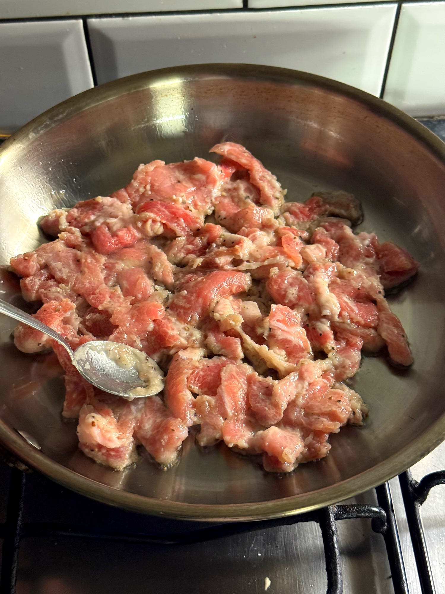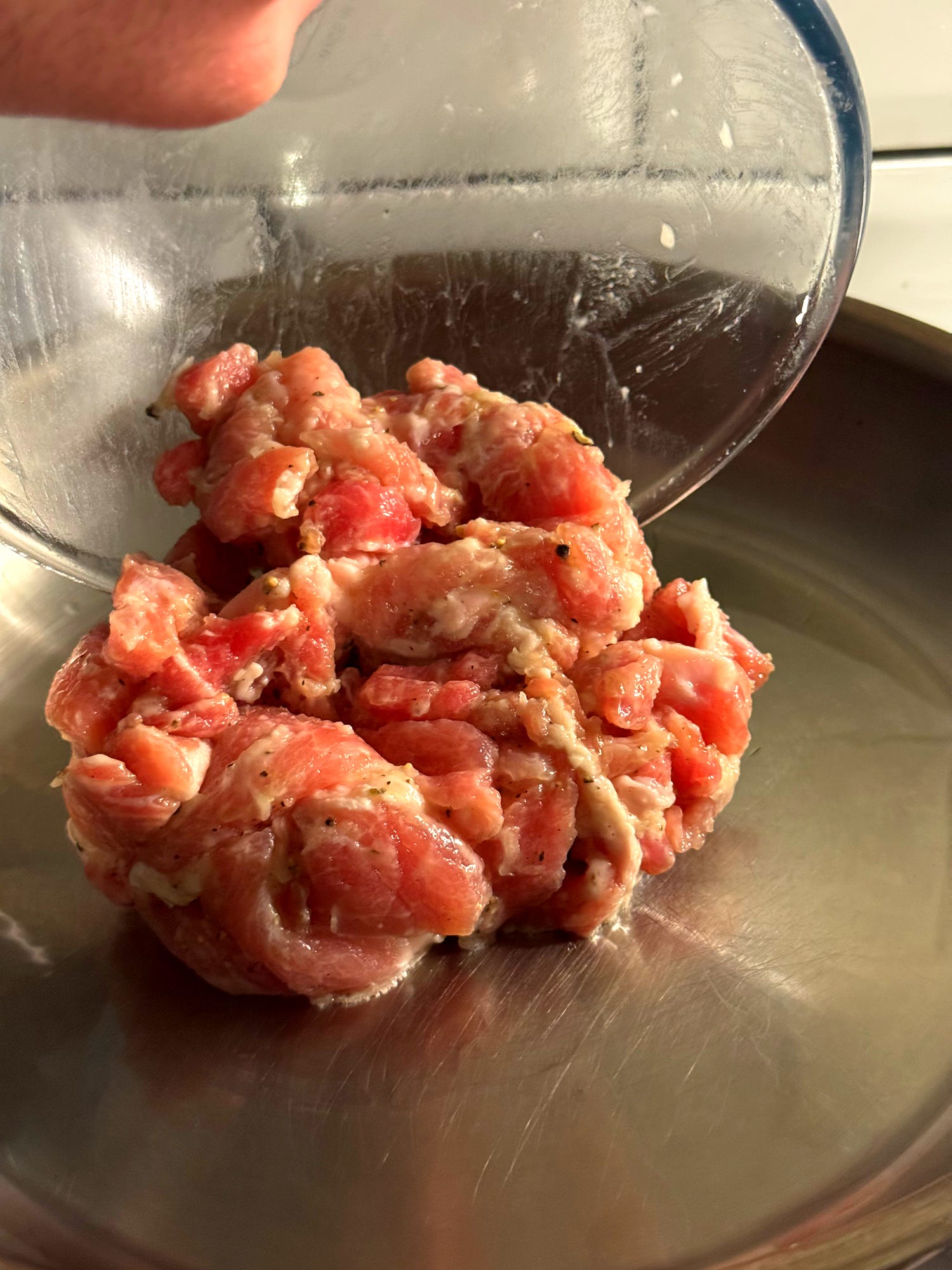 3x boneless pork loin chops, trimmed and diced