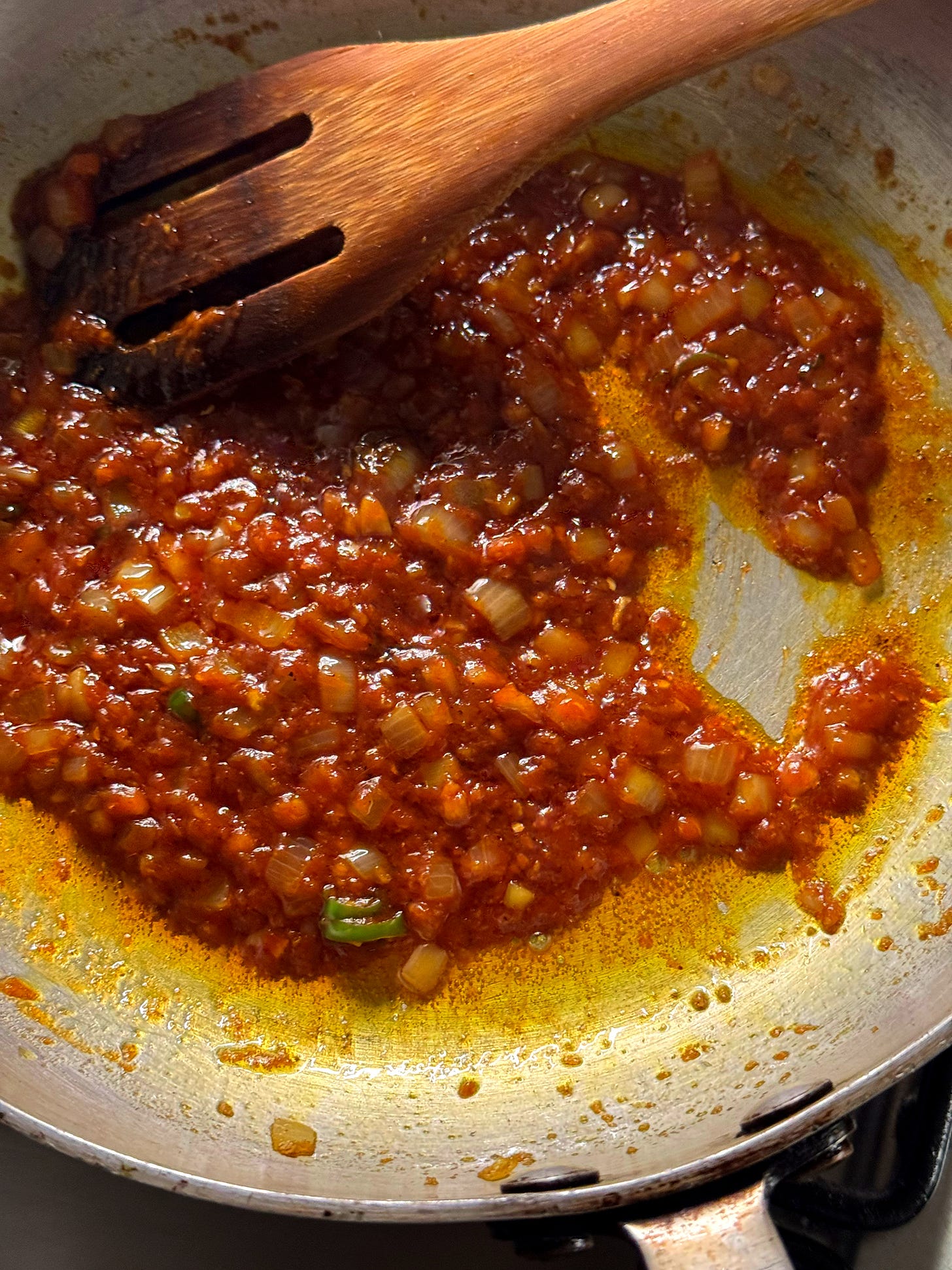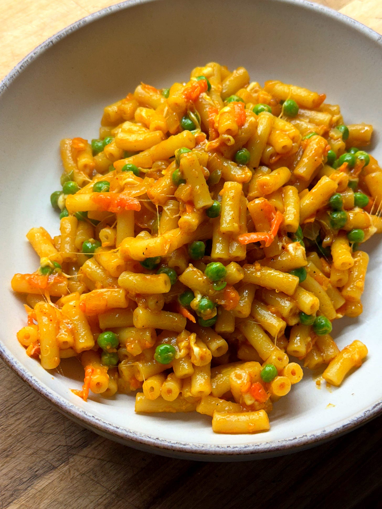 A popular urban dish in India’s cosmopolitan centres, the Western concept of macaroni was introduced to India through Western occupation, where it was supplied as bulk food source to feed the occupying British workforce. Macaroni featured in most military canteens, where Indian cooks would naturally flavour it according to their own instincts. Macaroni’s usefulness as a long-lasting pantry item became a part of urban food culture, just as it has in many places around the world that had some occupying interaction with the West. Like many desi dishes, this dish too starts with a tempering - spices toasted briefly in oil - before being charged with fresh aromatics. The base of the sauce is actually ketchup, which provides the sweetness and sourness that you need to balance the dish. Finally, a heap of fresh macaroni along with a medley of fresh vegetables captures the spices and aromatics beautifully. And finally, don’t forget the cheese! Shredded, dried mozzarella is readily available in India’s modern urban supermarkets and it takes extremely well to spices. Let’s go!