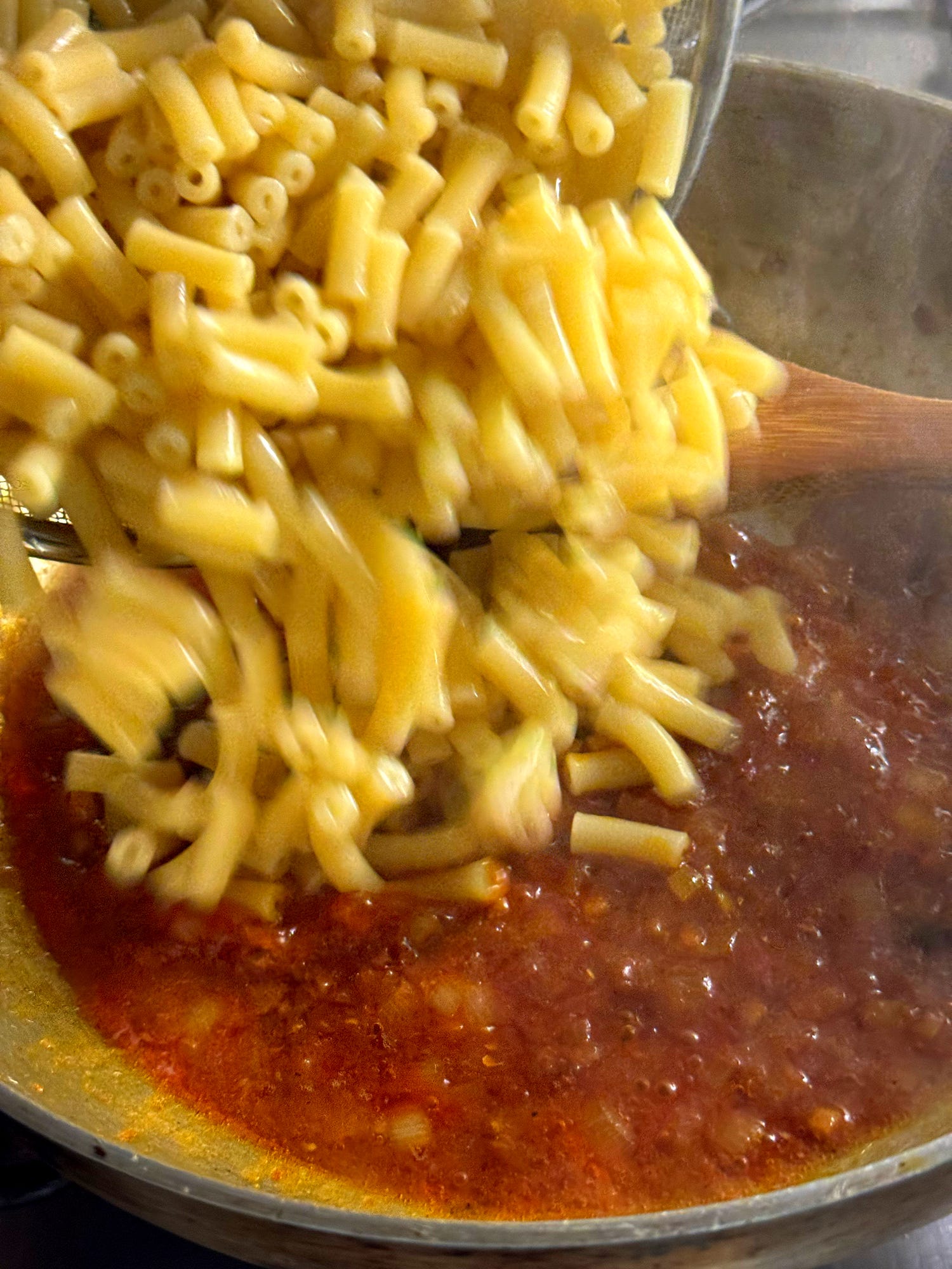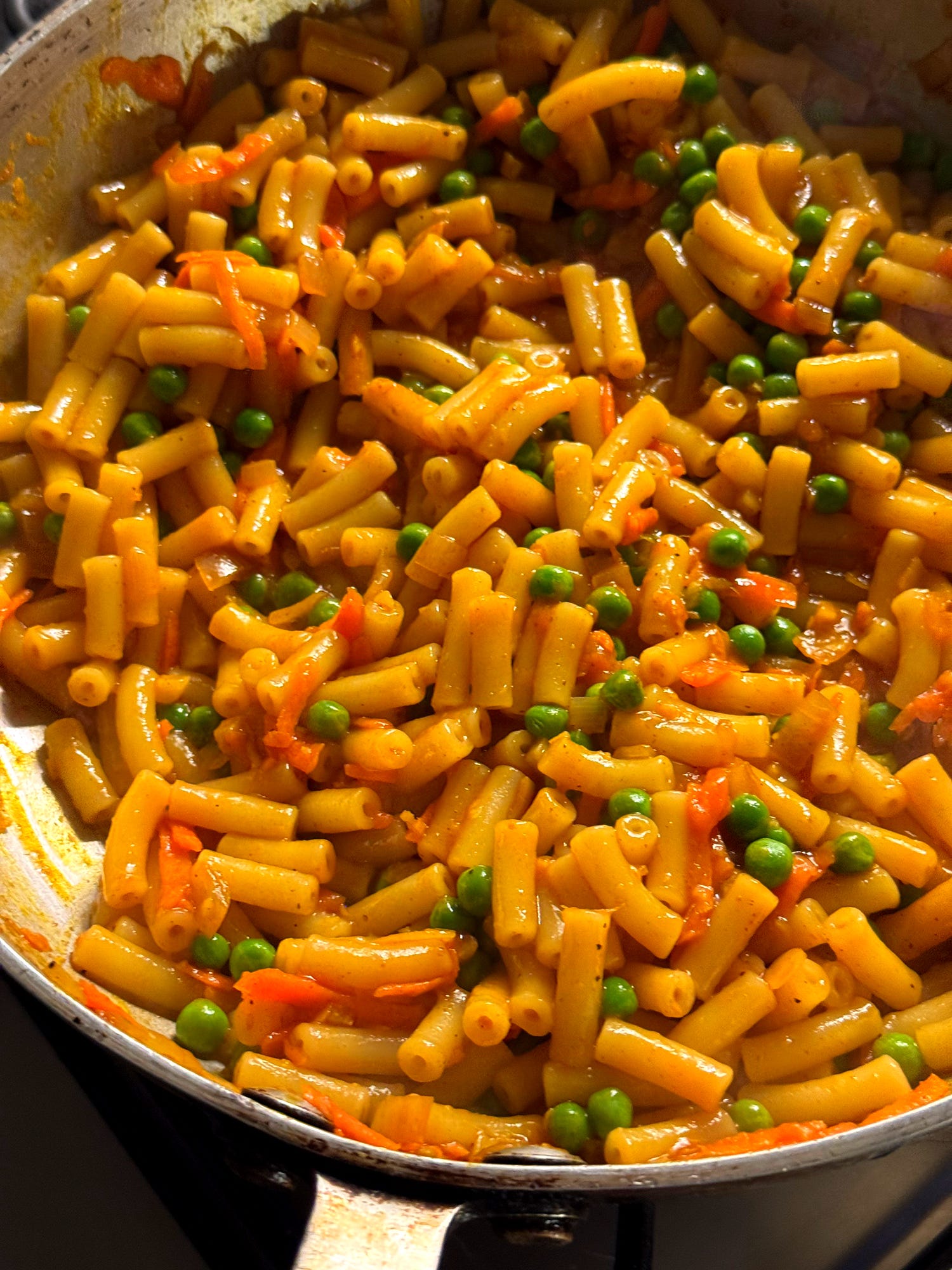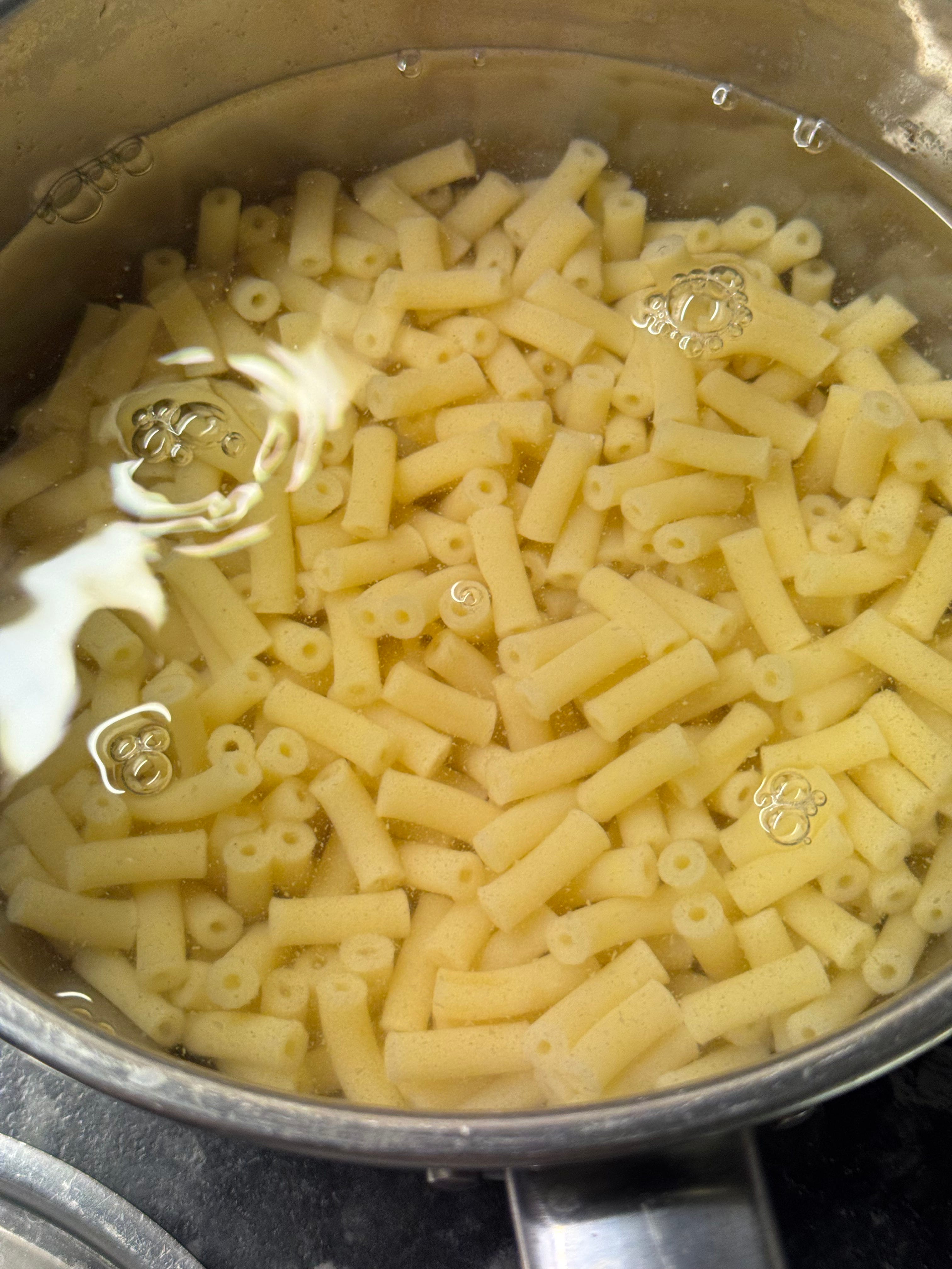 First, place your macaroni onto boil according to the packet instructions. You can cook the pasta while you make the masala sauce, or drain and rinse the pasta once cooked and keep it aside.
