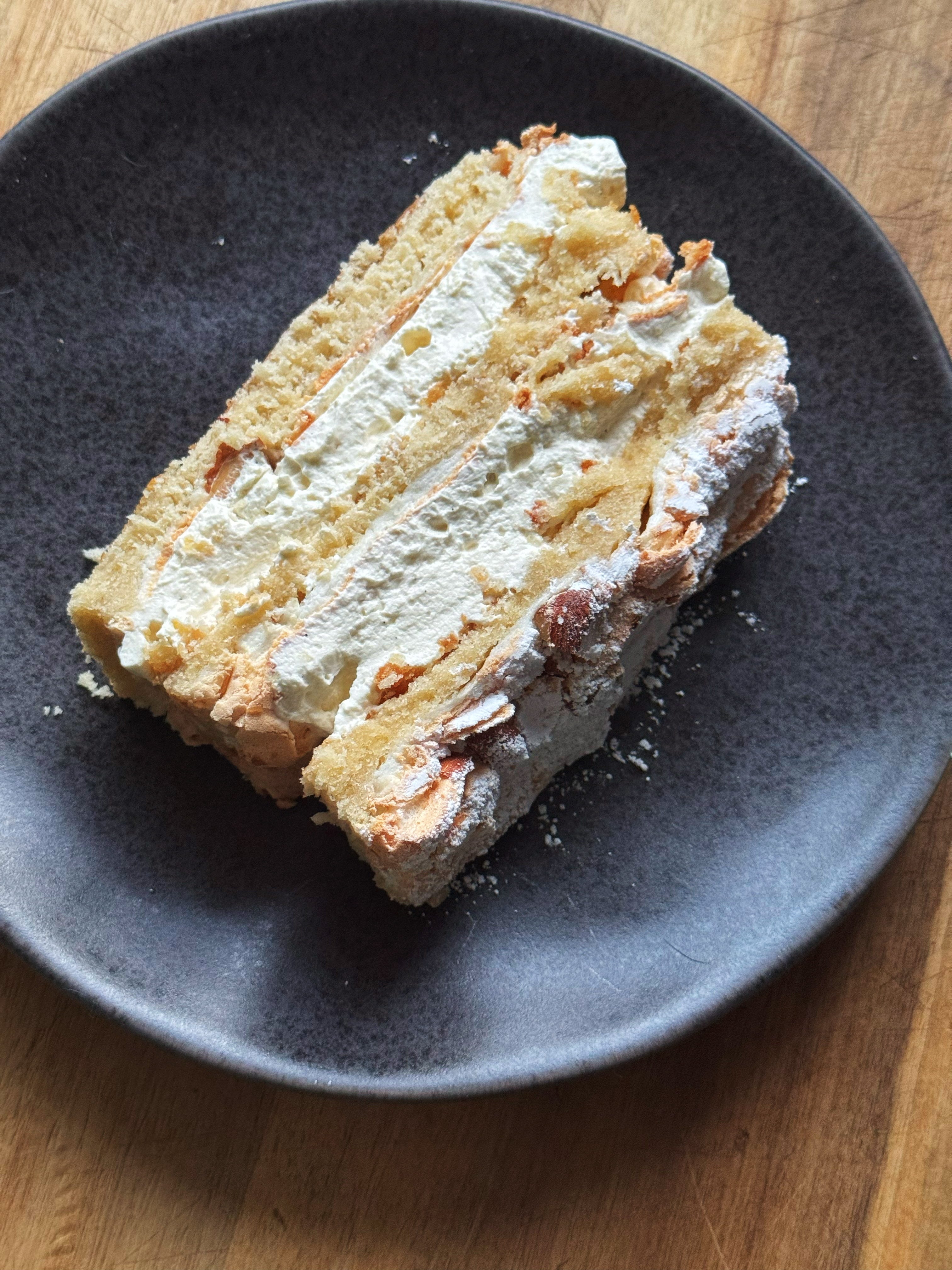 This traditional Norwegian cake combines layers of custardy sponge, crisp meringue, toasted almonds and angelic heaps of whipped cream.