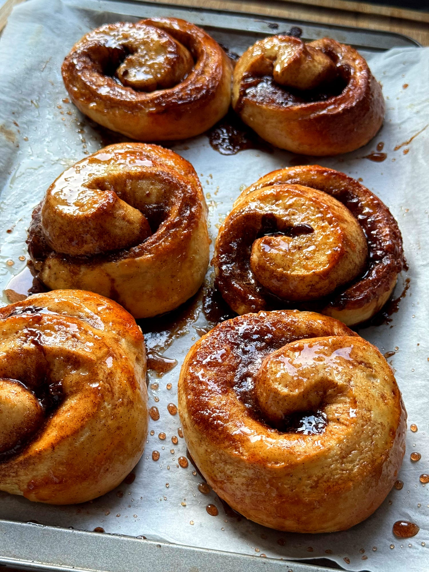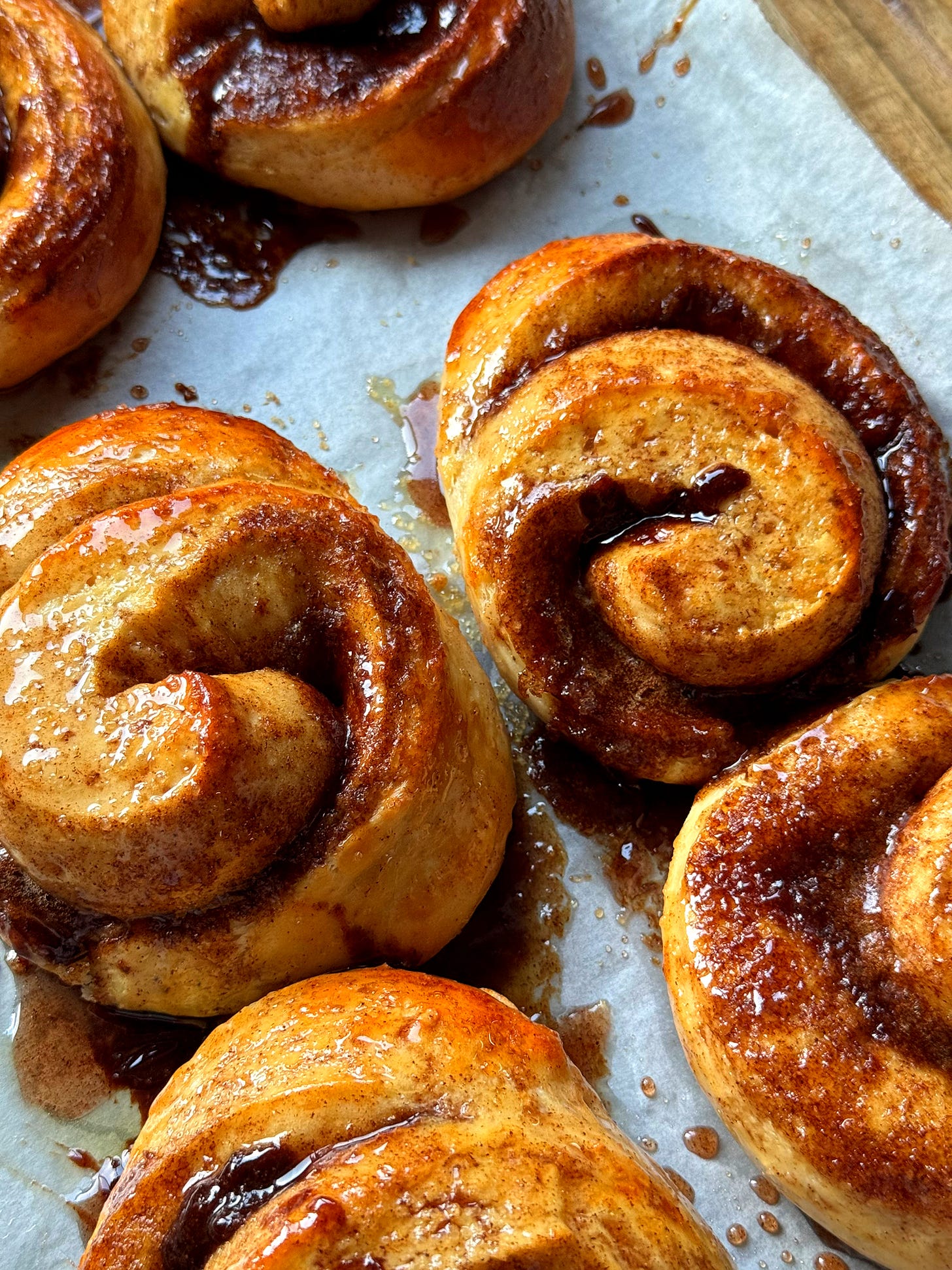 Scandinavia is well-known for their interpretation of the cinnamon bun, an idea originally brought to the region by German bakers. Cinnamon however, coming from the tropics, had no business being in the Nordic countries. The first supply of cinnamon to Nordics came via the city of Bergen. Bergen was the first city in the region to the join the Hanseatic League, a historic union of key trading cities such as Hamburg, London and Bruges. Bergen had its own valuable delicacies in the form of dried cod, and in return they would sometimes receive spices like cinnamon and cardamom from the tropics, now thoroughly popular in Nordic baking. This cinnamon bun, known as the ‘skillingsbolle’ (they used to cost one shilling), is originally from Bergen, and boasts a simple filling of cinnamon and dark sugar. The buns are baked free-form, not huddled together, giving each one a golden crust and a fluffy interior. Unlike most modern cinnamon buns, skillingboller are not tightly wound into attractive spirals. In fact, the simpler the spiral the better, as the bread is able to bloom fully into a fluffy, moist bun. I’ve taught this recipe for many years in my Nordic baking classes and dare I suggest it might be the best cinnamon bun you will eat. Ever. Let’s go!