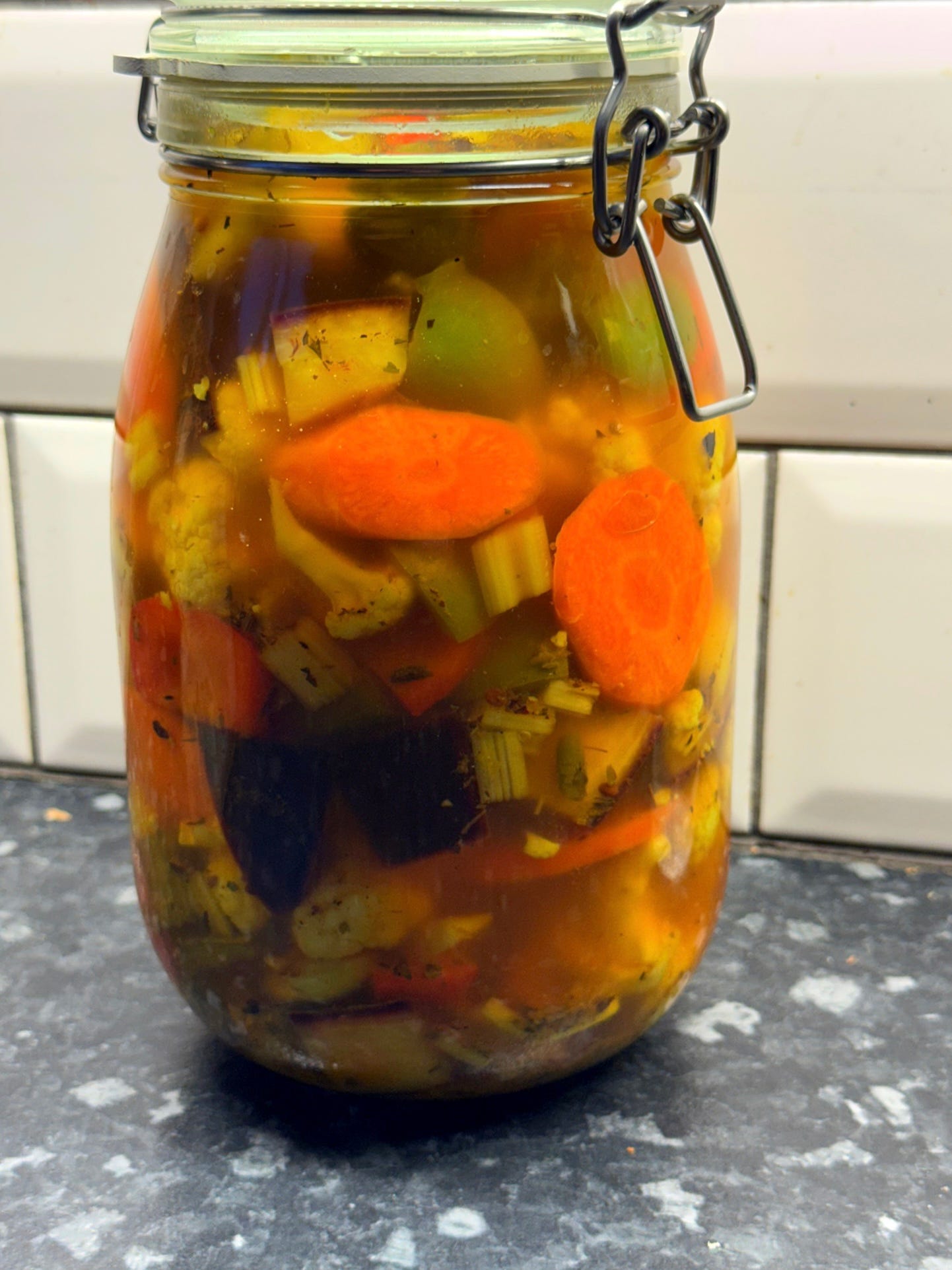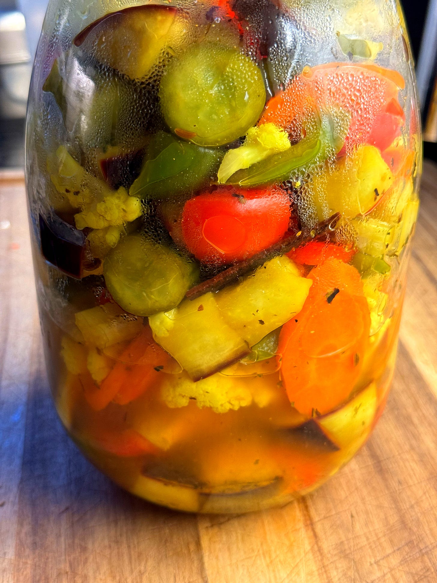 Historically, pickling is an important part of Persian cookery. The summer season in Iran promises a bounty of fresh fruits and vegetables, and a much cooler, less fruitful winter makes preserves like this very handy if not essential. There are many styles of pickles in Persian cuisine, but this version, known as ‘torshe makhloot’, is a mixed pickle that uses any vegetables you have on hand from cauliflower and aubergines to peppers and cucumbers. This particular recipe uses the classic combination that’s recognisable to most Persians. It’s a great, refreshing addition to Iran’s many salads, dips and rice dishes, and they’re essential alongside Persian style stews, meat grills and kebabs. This pickling process is very simple and straightforward - it’s really a ‘quick pickle’ - and will grant you pickles for a couple of months if you store them in the fridge or a cool basement. Let’s go!