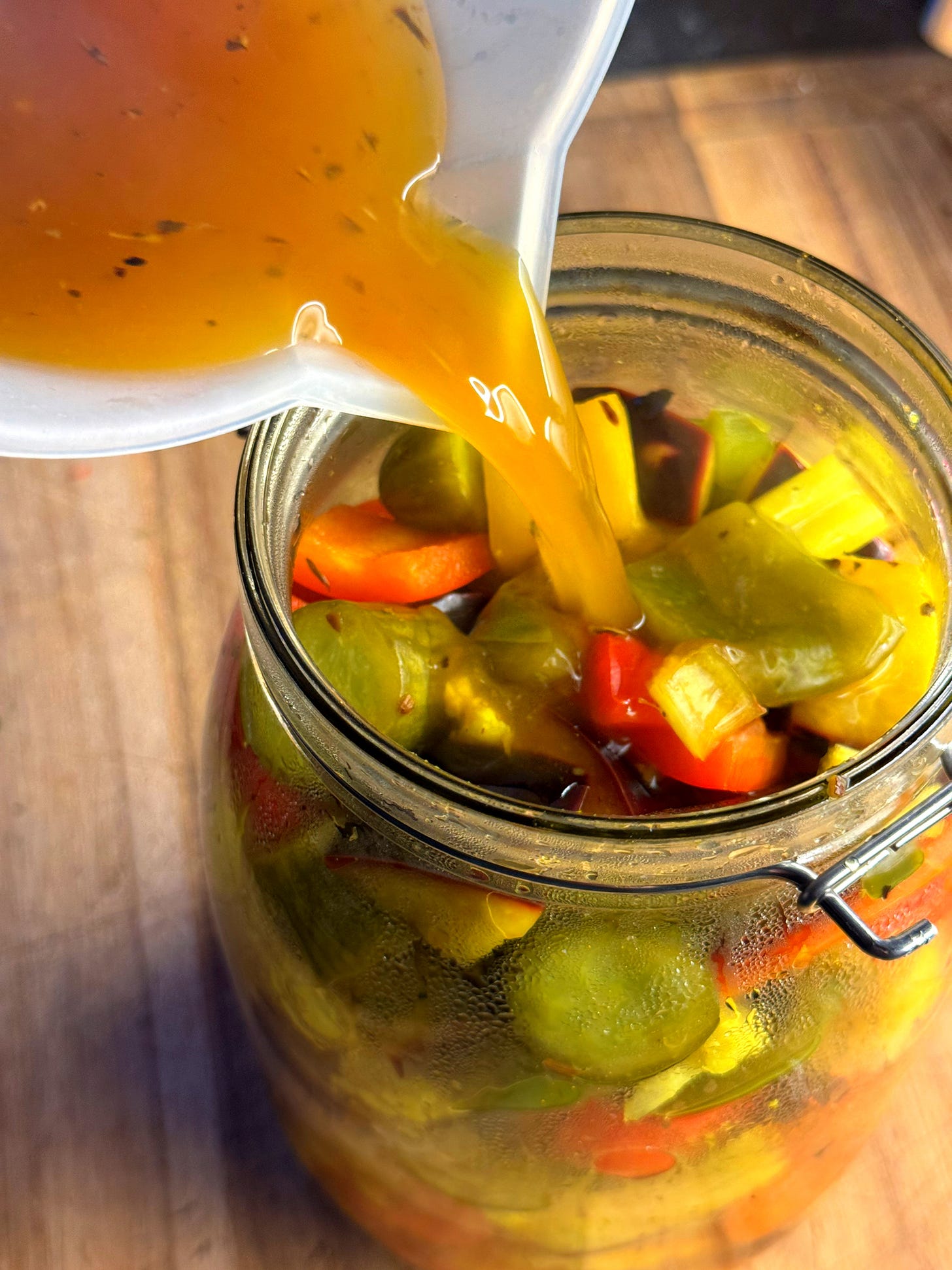 Carefully transfer the pickles to warm, clean jars, packing them in well. Once filled to just below the rim, pour in the brine and fill the jars to 1/2-inch below the rim. Place a lid onto the jar and twist it until it’s ‘finger-tight’. Leave the jars to cool at room temprature until completely cool.