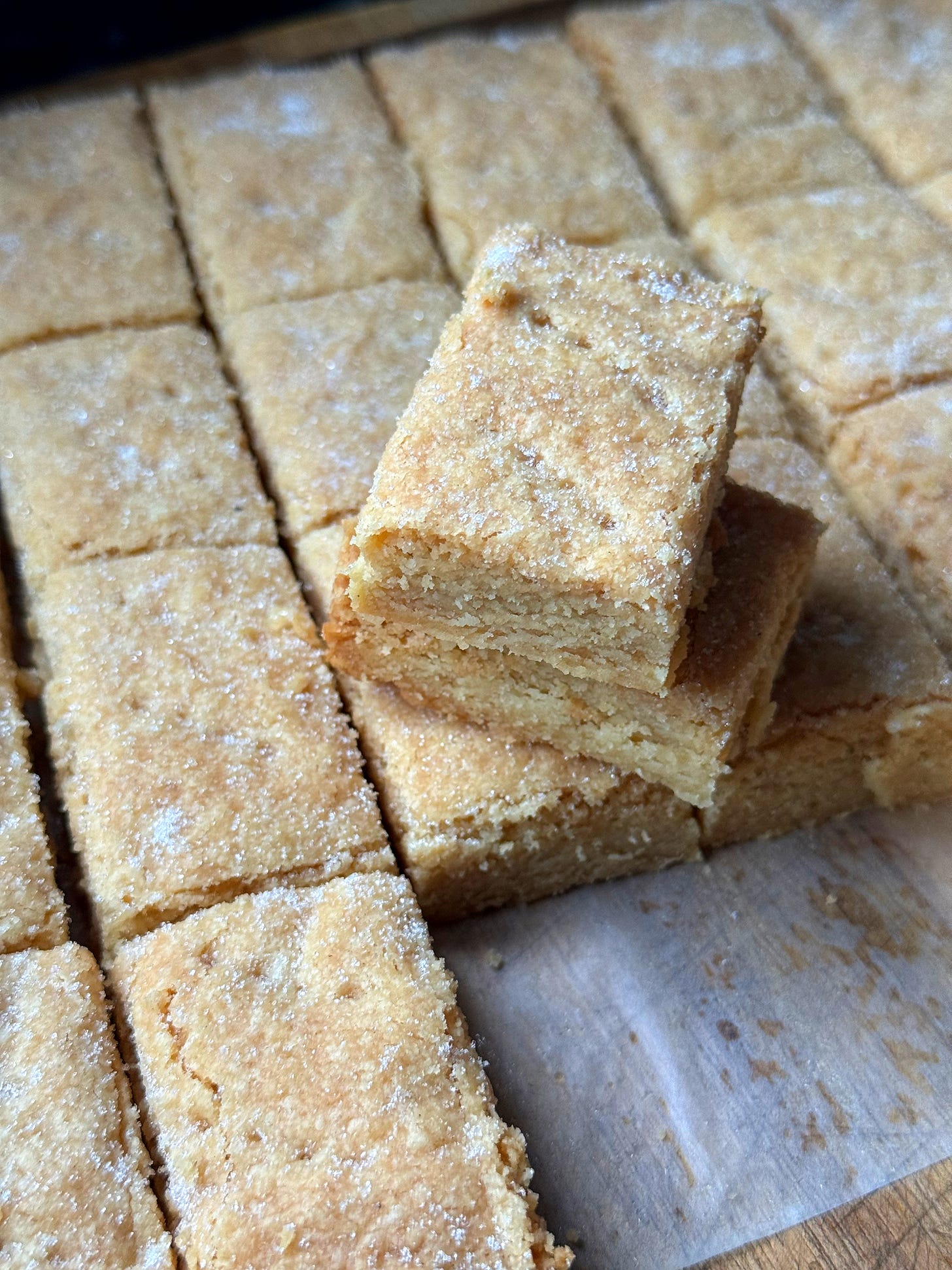 Scottish shortbread is a coveted treat for any visitor to Scotland. Proper shortbread is a very simple recipe with no bells and whistles. The butter does most of the heavy lifting, and there’s no vanilla to hide behind either. I use cornflour in this recipe, though some Scots will insist on rice flour. This recipe also picks up some historic details from the last century, particularly in sort of sugar used. Sugar in the last few centuries wasn’t as refined as the white sort we get now, and it would often have traces of flavourful molasses that made the sugar taste…like sugar! In this recipe I capture that essence with a small addition of brown sugar. Feel encouraged to explore other regional varieties of shortbread too, such as Ayrshire-style shortbread [GET THE RECIPE] which adds eggs and cream, and the Highland-style shortbread which adds milled, toasted oats. Wonderful with a hot cup of tea. Let’s go!