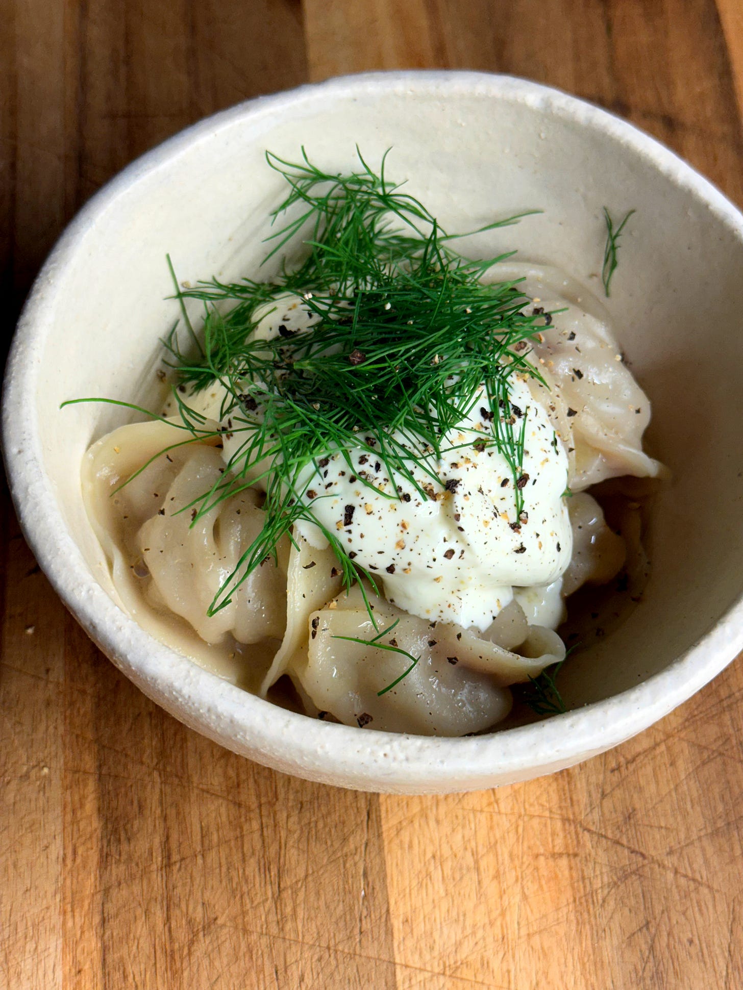 Between the European and Chinese dumpling traditions you’ll find Russian dumplings: pelmeni. Like many dumpling styles throughout Central Asia, these dumplings are a descendant of Turkic people who roamed the region. You’ll find that pelmeni are loved throughout Russia, but Siberia exhibit the very best as their beef and dairy quality reign supreme. The filling consists of meat, usually beef and sometimes mixed with some veal. Because Siberia has a short growing season, the filling is modestly flavoured with salt, pepper, onion and celery, with a dash of horseradish for a prickly heat. The hallmark of pelmeni is their juiciness. A good trick to achieve this is using 20% fat beef and adding some ice cubes to the mix. These ice cubes keep the meat mixture firm enough so they hold onto water. The mixture is then wrapped in a flour-water dough - for which I recommend using pre-made Asian dumpling/gyoza skins - then formed like a tortelloni. After just a few minutes boiling, they’re tossed in foamy butter and served with soured cream, black pepper and dill or chives. It’s a gorgeous, simple winter dish to hibernate with. Let’s go!