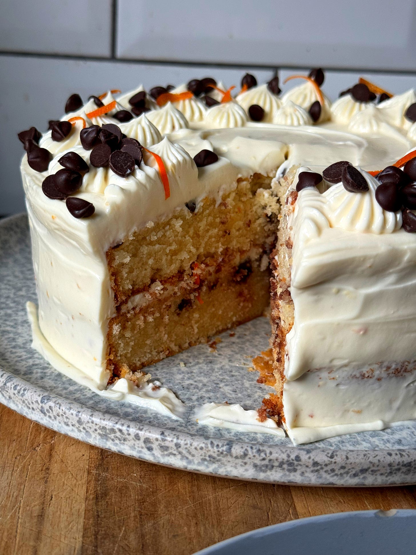 Inspired by the delightful 'cannoli Siciliani', this layer cake combines all the classic elements of traditional cannoli, featuring layers of chocolate chip-orange sponge and a sublime ricotta icing.