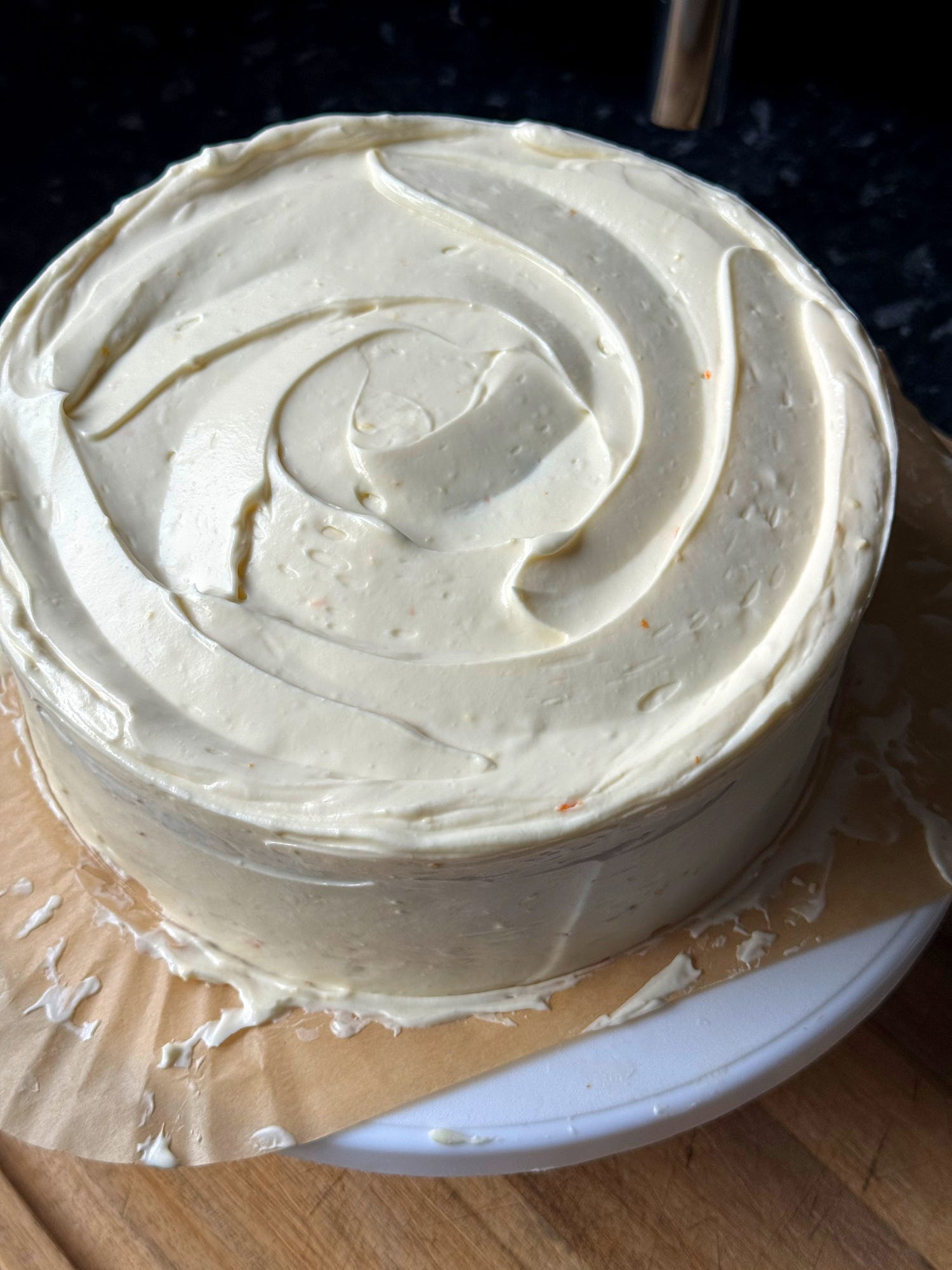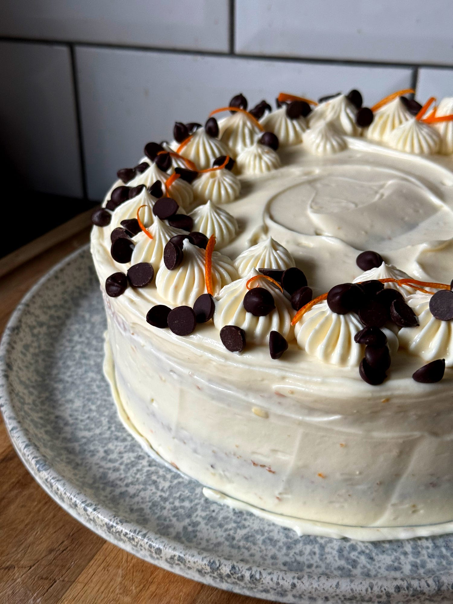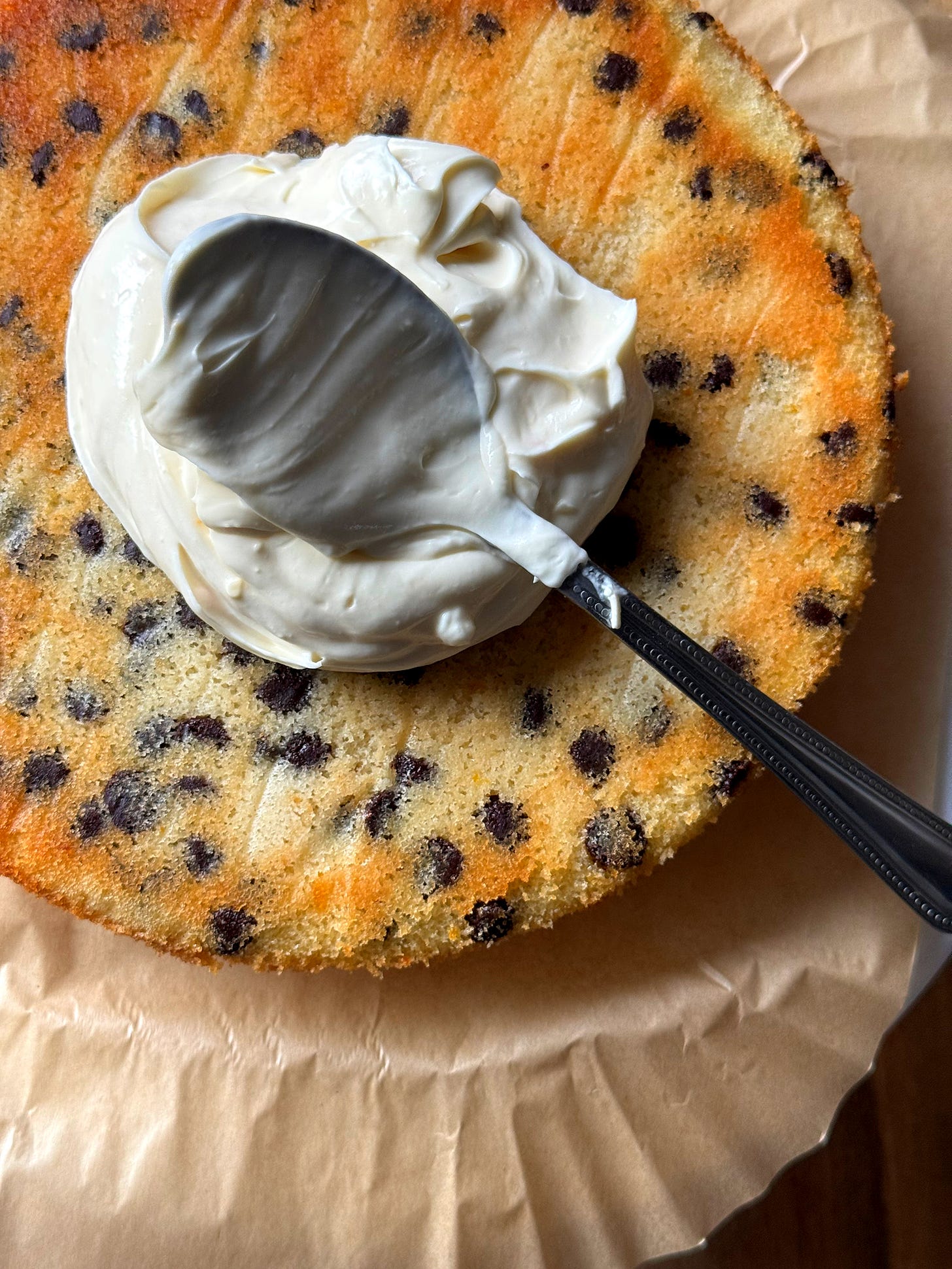 Although not Sicilian whatsoever, this layered sponge cake features the flavourful elements of classic ‘cannoli Siciliani’. Two layers of orange-scented chocolate chip-flecked sponge cake are filled and coated with a ricotta-mascarpone icing. The icing boasts a light, milky ricotta taste and makes an excellent decoration with dark chocolate chips and orange zest. This is my birthday cake for 2026, and I’ve been waiting to bring it to life since I visited Sicily last year. It’s a wonderful rustic cake - you really needn’t bother with any fancy piping. Just slap on the icing and have fun! Let’s go!