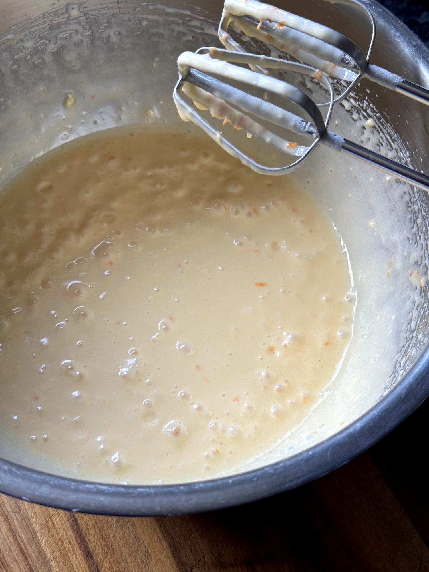 Add the 125g softened butter, 120ml vegetable oil and stir to combine.