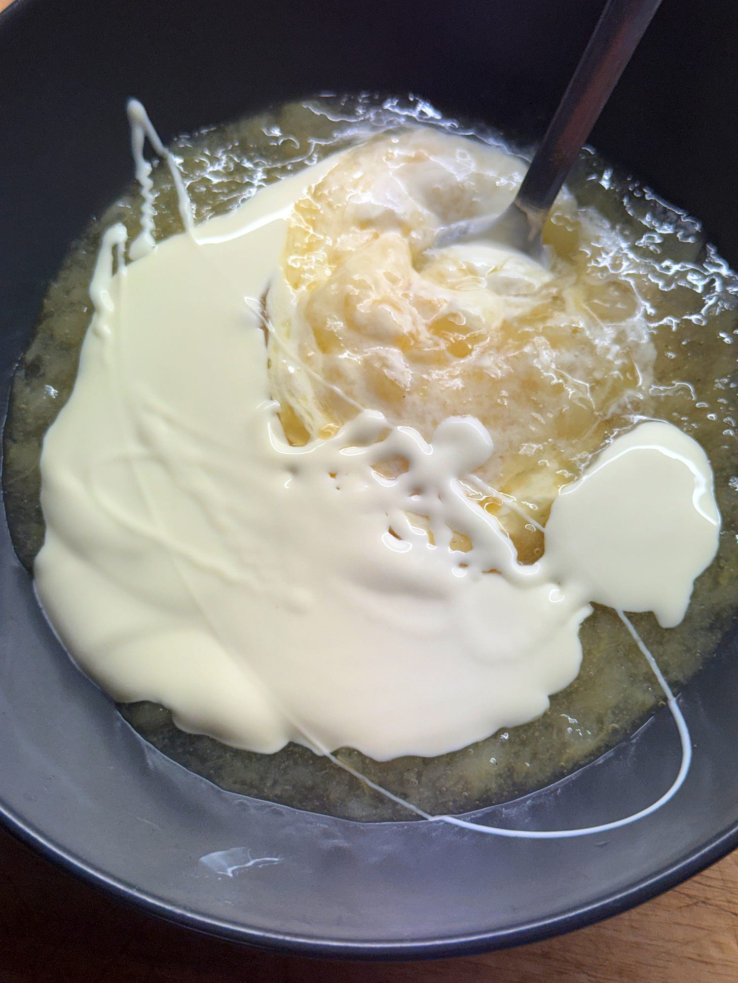 This old fashioned dessert is especially popular in the South of Sweden and Gotland. I recently encountered it on a lectureship in Sweden, where I noticed an abundance of pear trees. Almost every residential property had at least one fruit tree in their garden, and it was usually a pear tree. It led me to ask Swedes do with all of these pears, besides making delicious cider. The answer was ‘päronkrem’, literally ‘pear cream’, which is a very old dessert often served to small children. Admittedly, some Swedes still enjoy it into adulthood, and it’s an excellent way to mop up a glut of pears. They also make it with apples or rhubarb. ‘Päronkrem’ is simple a pear puree, lightly sweetened and thickened with potato starch. You’ll find potato starch in any Asian supermarket or online [BEST BUY]. It gives the pudding a very particular texture on setting that doesn’t quite work with cornflour. As Swedes do, serve this hot in a bowl with a generous slick of cold cream. I know it doesn’t seem much, and it might even be a hard sell, but this is one of the best desserts I’ve eaten this year. Let’s go!