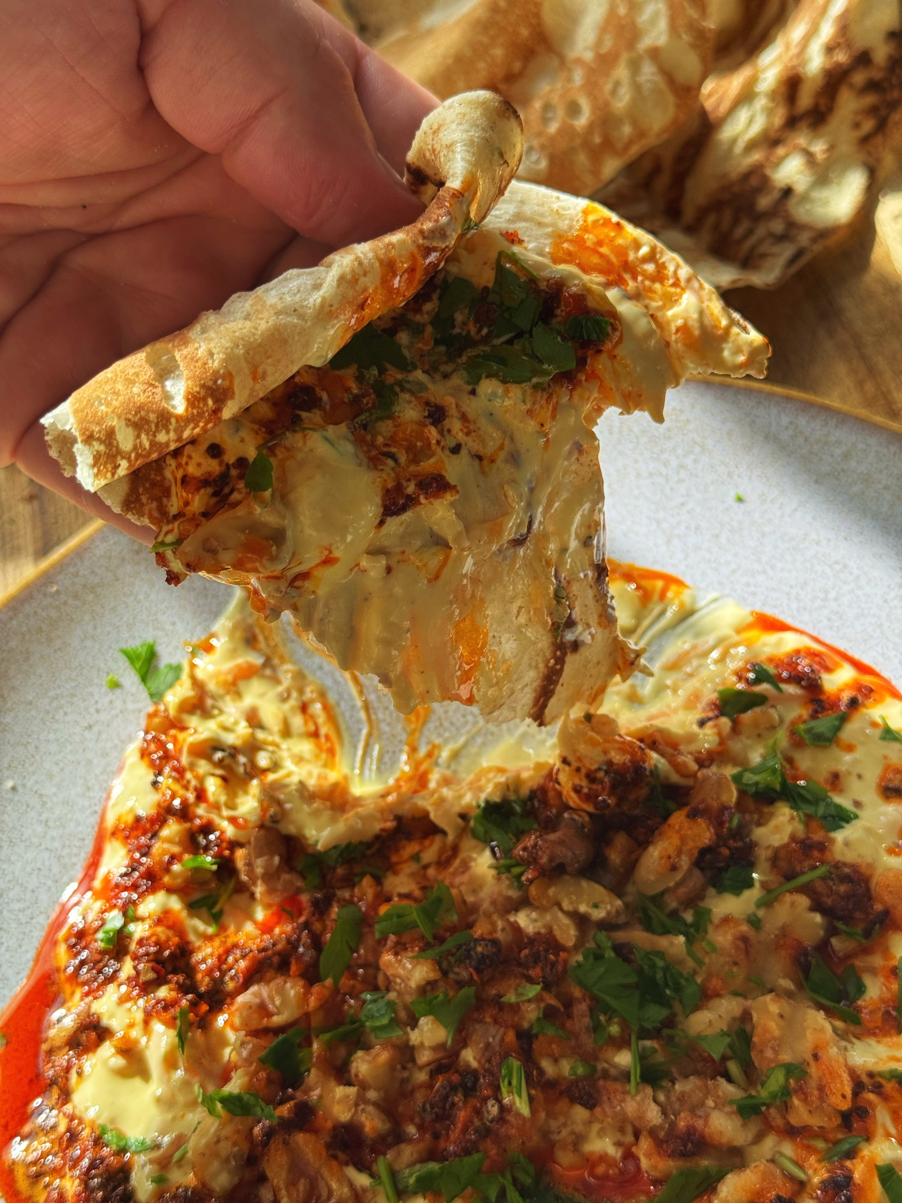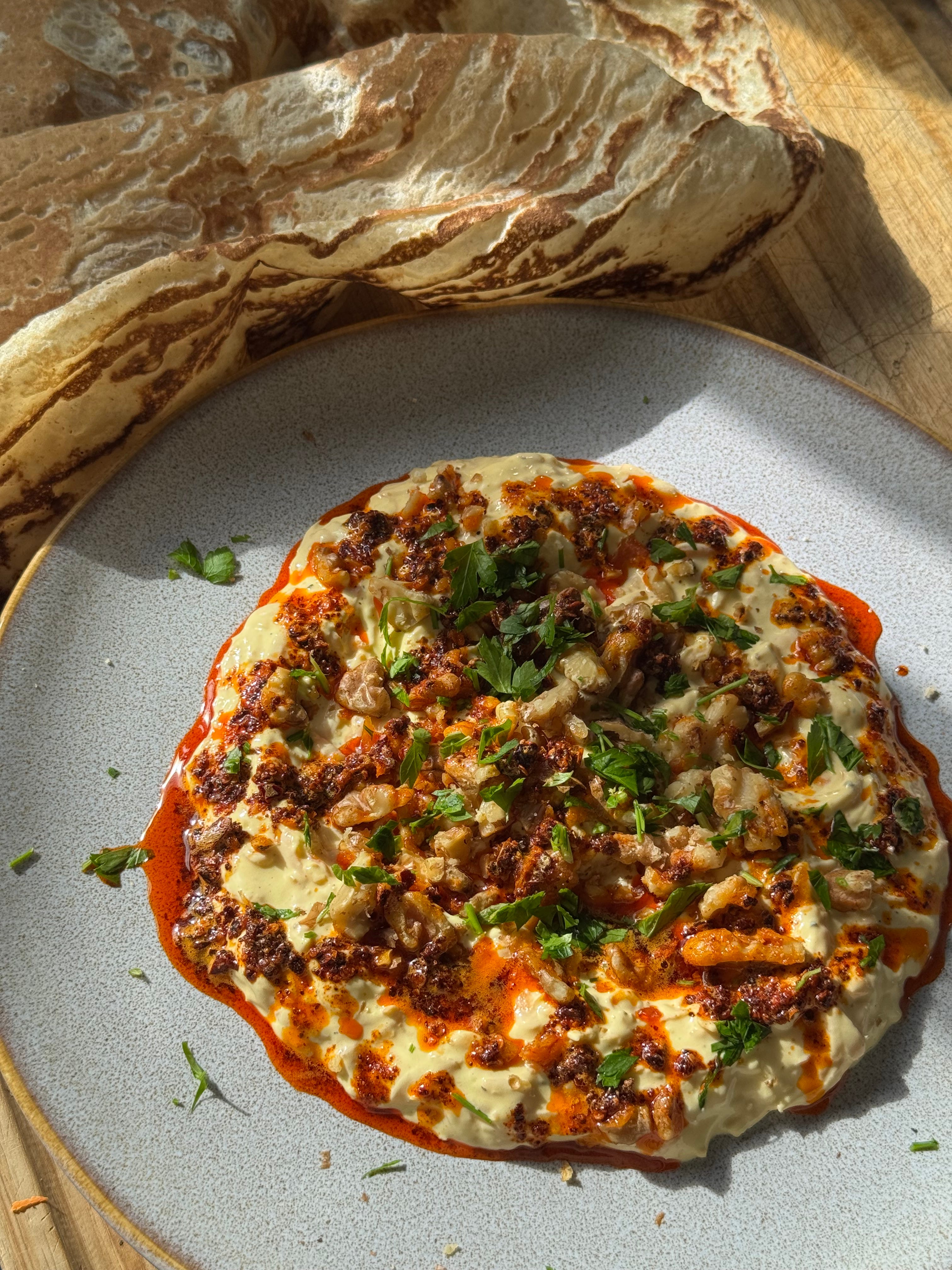 ‘Tarator’ is a popular dish eaten between Turkey and the Balkan countries, where it generally straddles being a dip and sauce. In its simplest form, it’s a combination of toasted walnuts, bread, lemon juice and olive oil, but you’ll find many recipes for it across this region that have adapted it to other produce. This popular Turkish version of tarator uses ‘havuç’ - carrots. The carrots can be added fresh or fried - I prefer the fried version as it really saturates the flavour of the carrots and makes a thicker, richer tarator. The rest is light work - a combination of yoghurt, mayonnaise - oh yes, many Turks add mayonnaise to it - seasoning and a chilli-butter sauce for top. Enjoy it with bread, crackers or with meze - the Turkish love tarator especially with seafood. Let’s go!