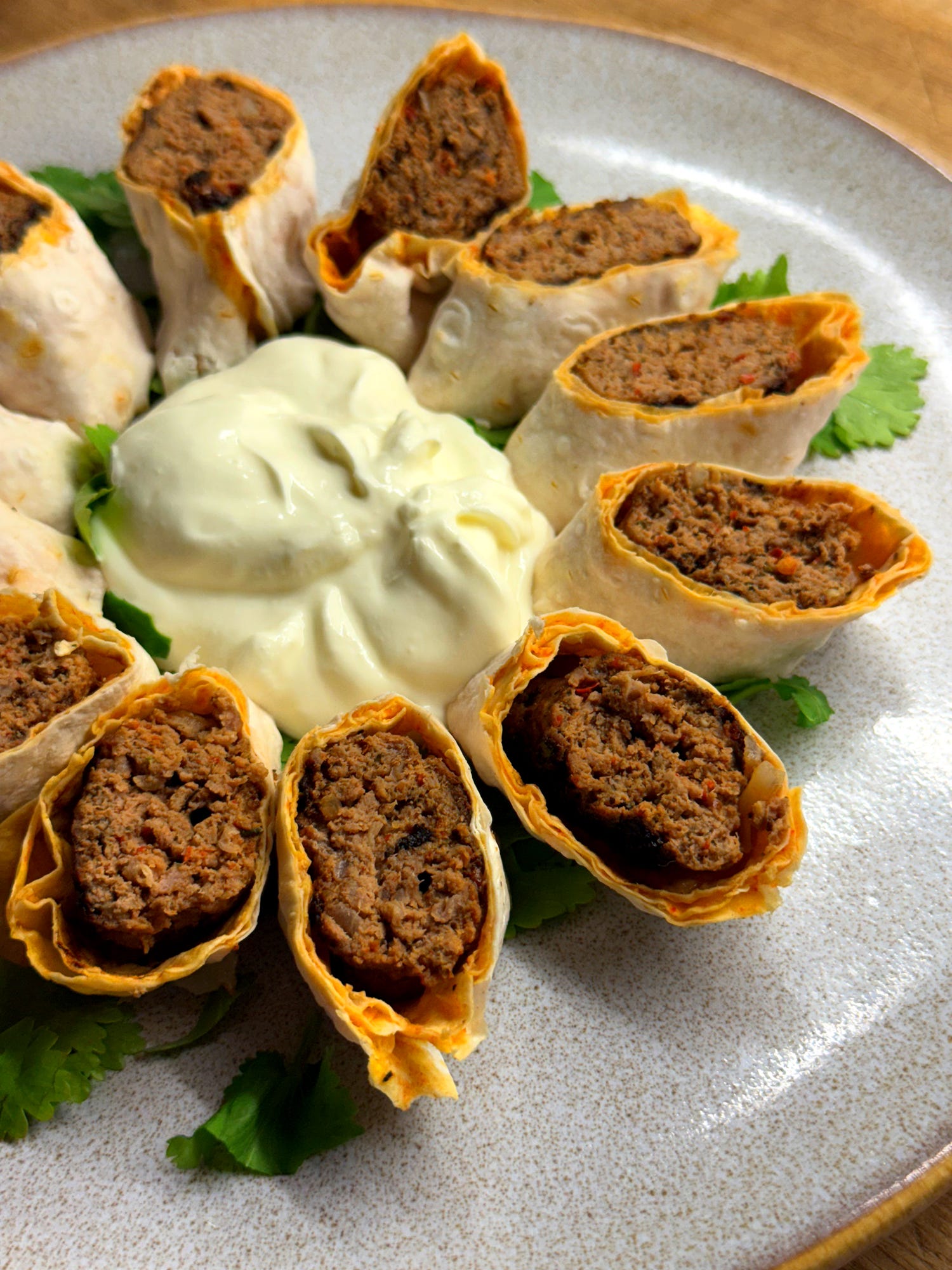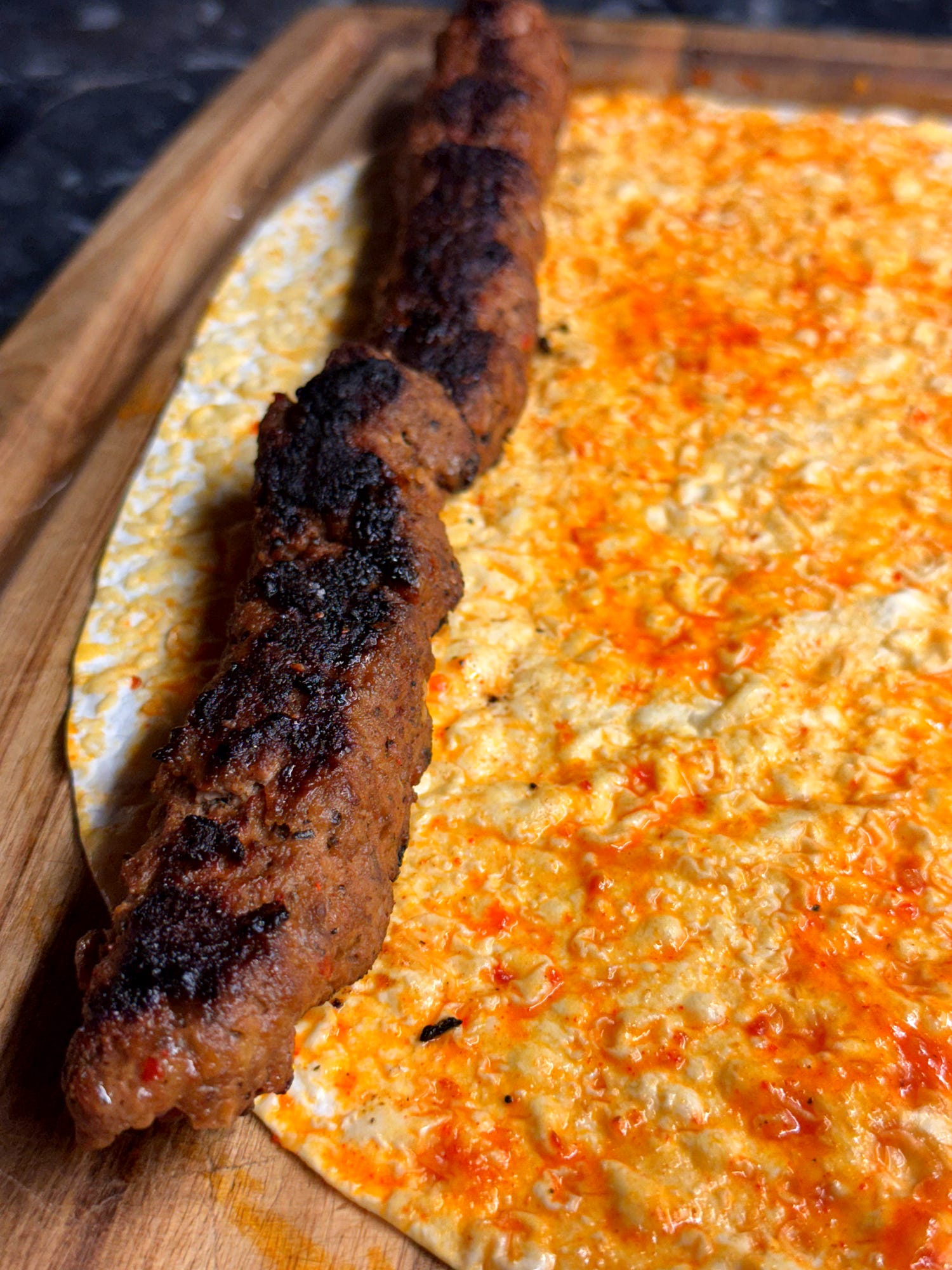 ‘Beyti kebap’ is a popular though slightly niche style of kebab in Istanbul, named after its creator Beyti Güler who created it in his restaurant. The beyti kebab has transformed over the years, using more affordable minced meat instead of Güler’s lamb fillet. The meat mixture is flavoured with spices and aromatics and grilled on skewers like kofte. These kofte are then rolled into lavash bread (flour tortillas work too) and sliced into juicy little morsels reminiscent of baklava. If you don’t have a taste for lamb, you can just as easily make this kebab with beef, but be generous with the fat content. Because the meat is up close and personal with bread, it can rob the meat of some moisture, so allow yourself the fat - 10-20% if possible - for some delicious insurance. With that in mind, this is a very easy and weeknight-friendly dish to prepare. Perhaps open a window for the smoke! Let’s go!